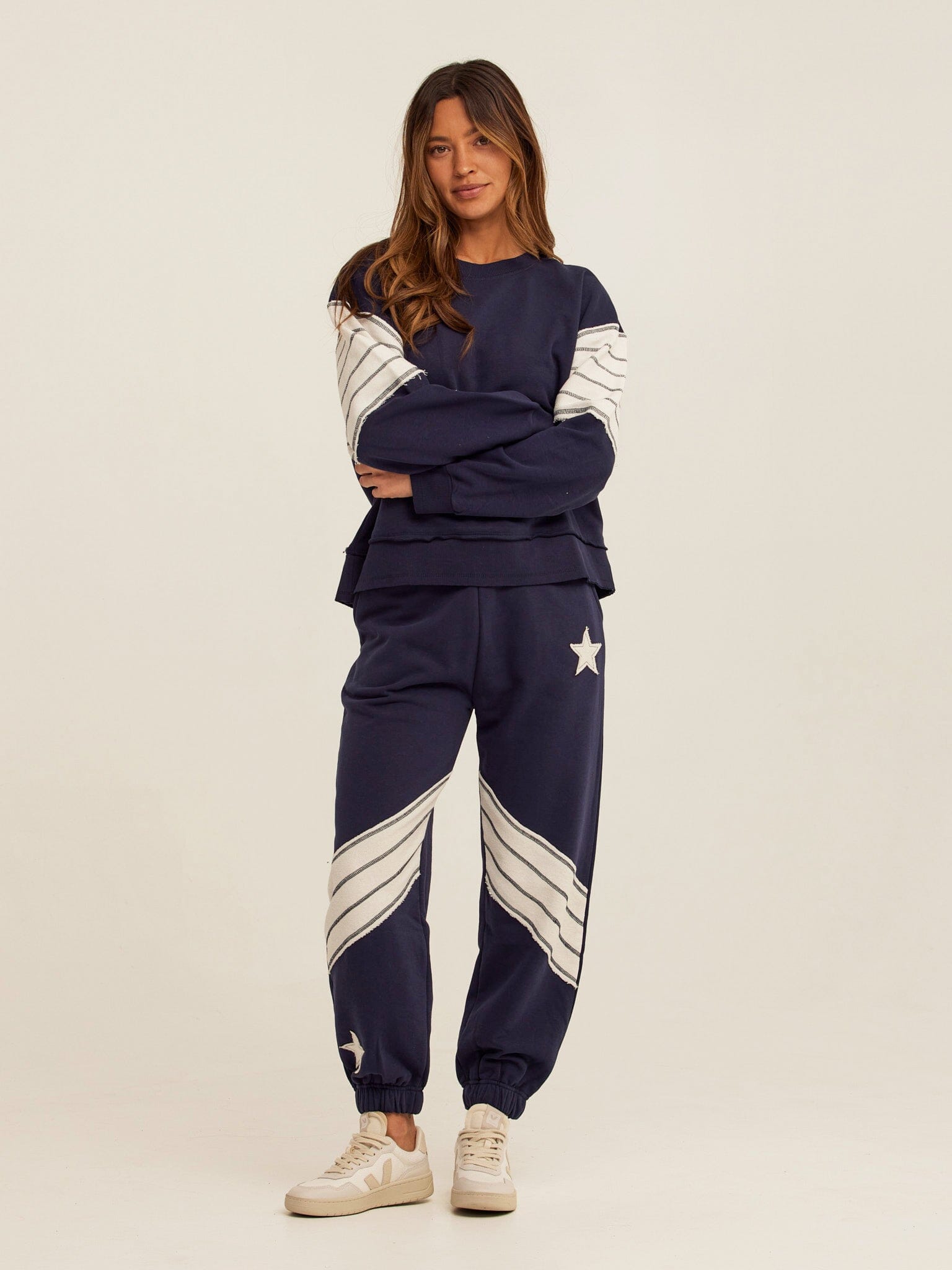 Relaxed comfort with an elevated edge. Made from soft cotton blend terry, this jogger features an easy pull-on waist, tapered leg, and contrast patchwork detailing for a standout look. Designed to move with you, it’s the perfect balance of comfort and style—ideal for lounging or stepping out.