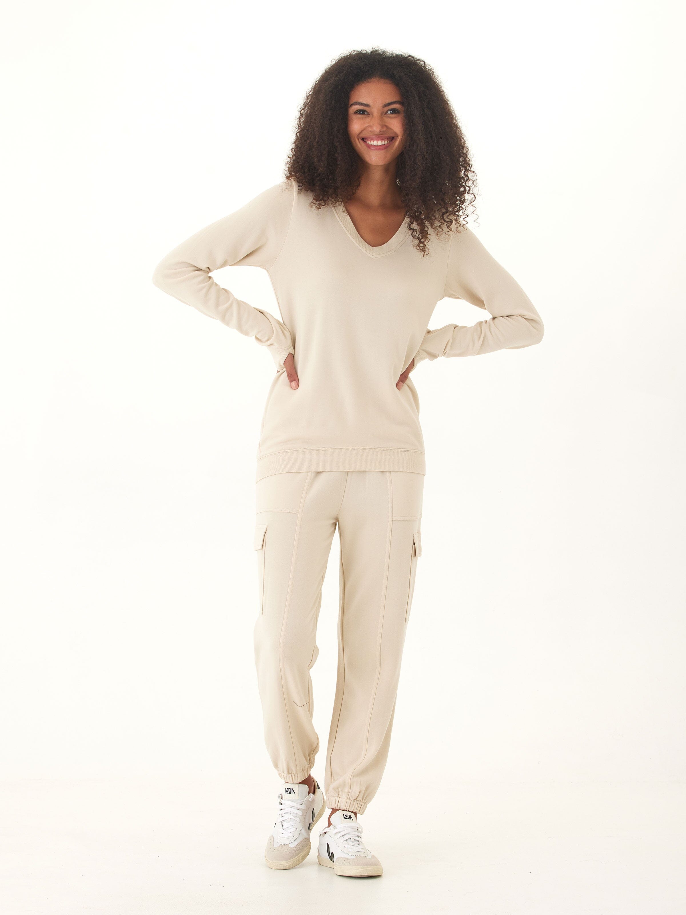 Upgrade your loungewear game with our Margot Feather Fleece Cargo Jogger. This relaxed fit jogger is an elevated version of our best-selling Connie jogger, featuring cargo pockets for added style. Stay cozy and chic with this must-have addition to your wardrobe.