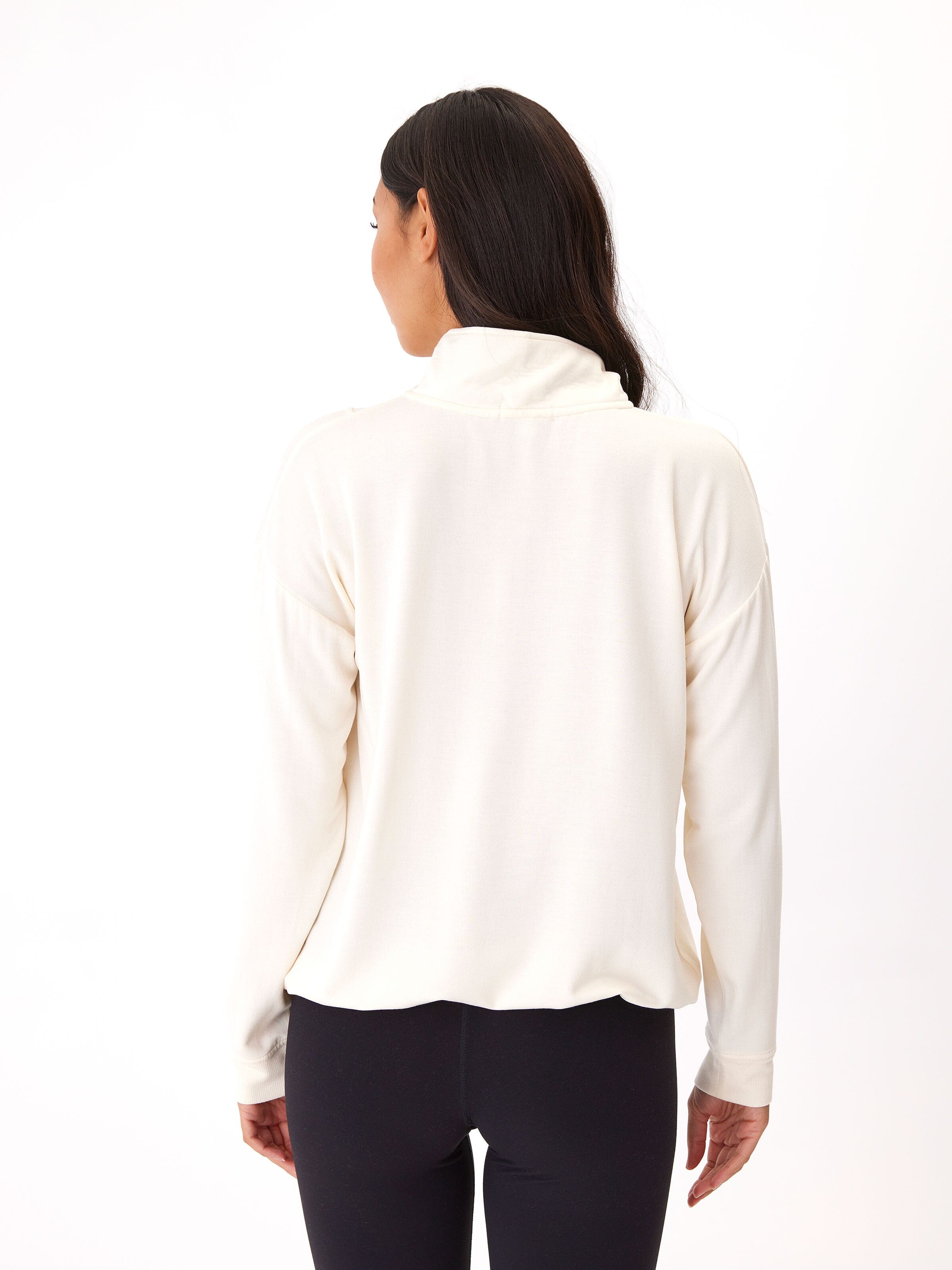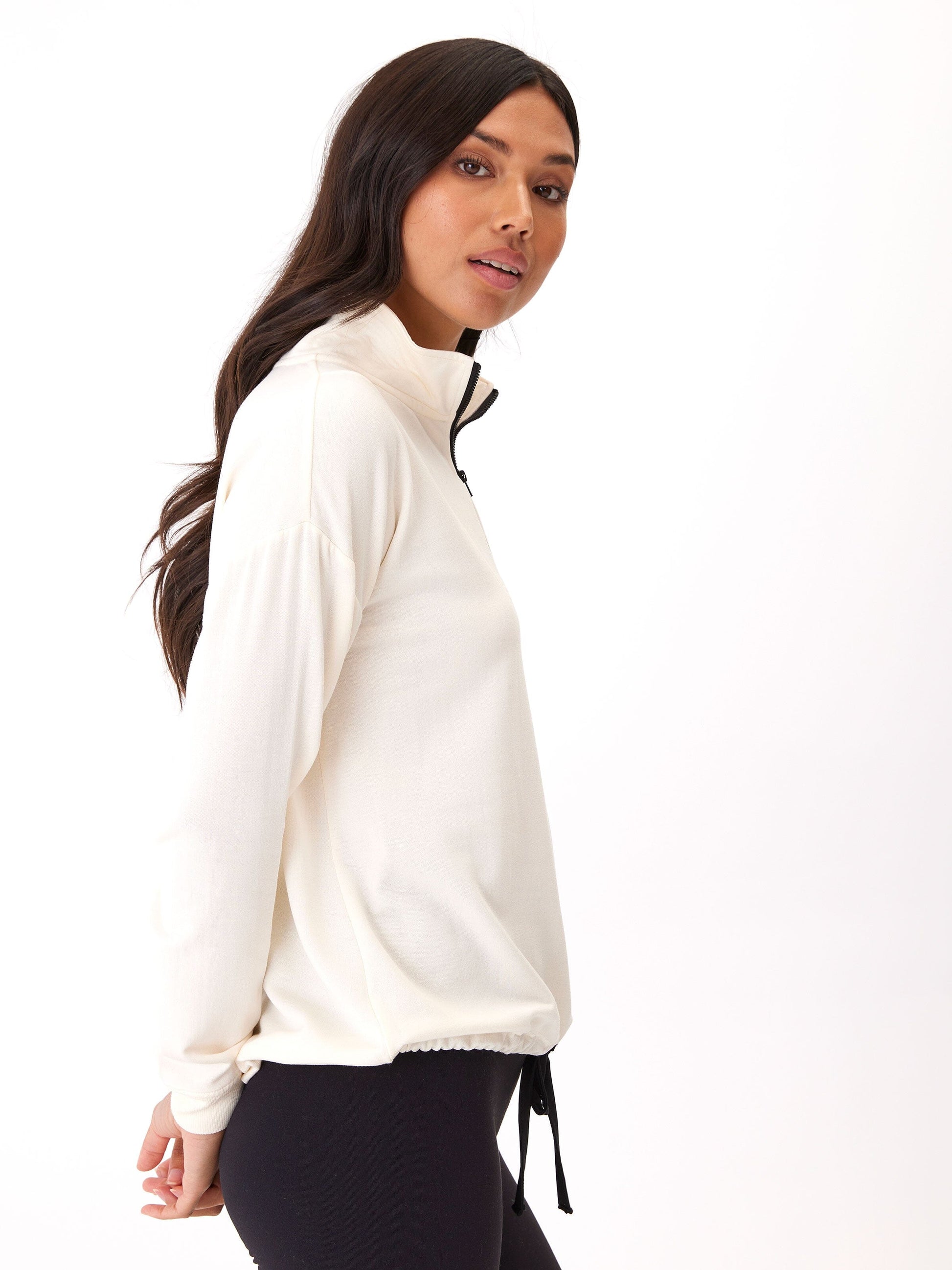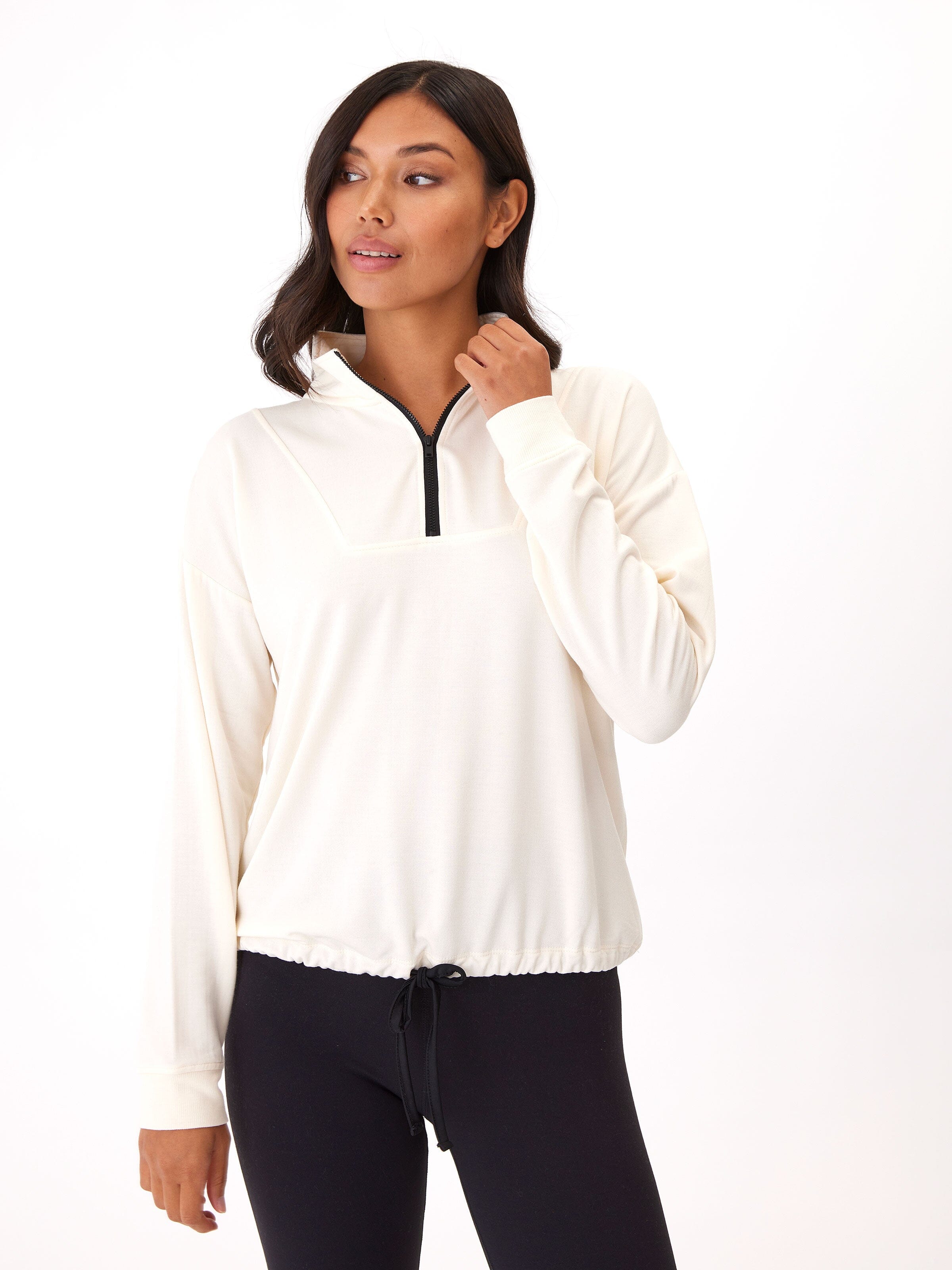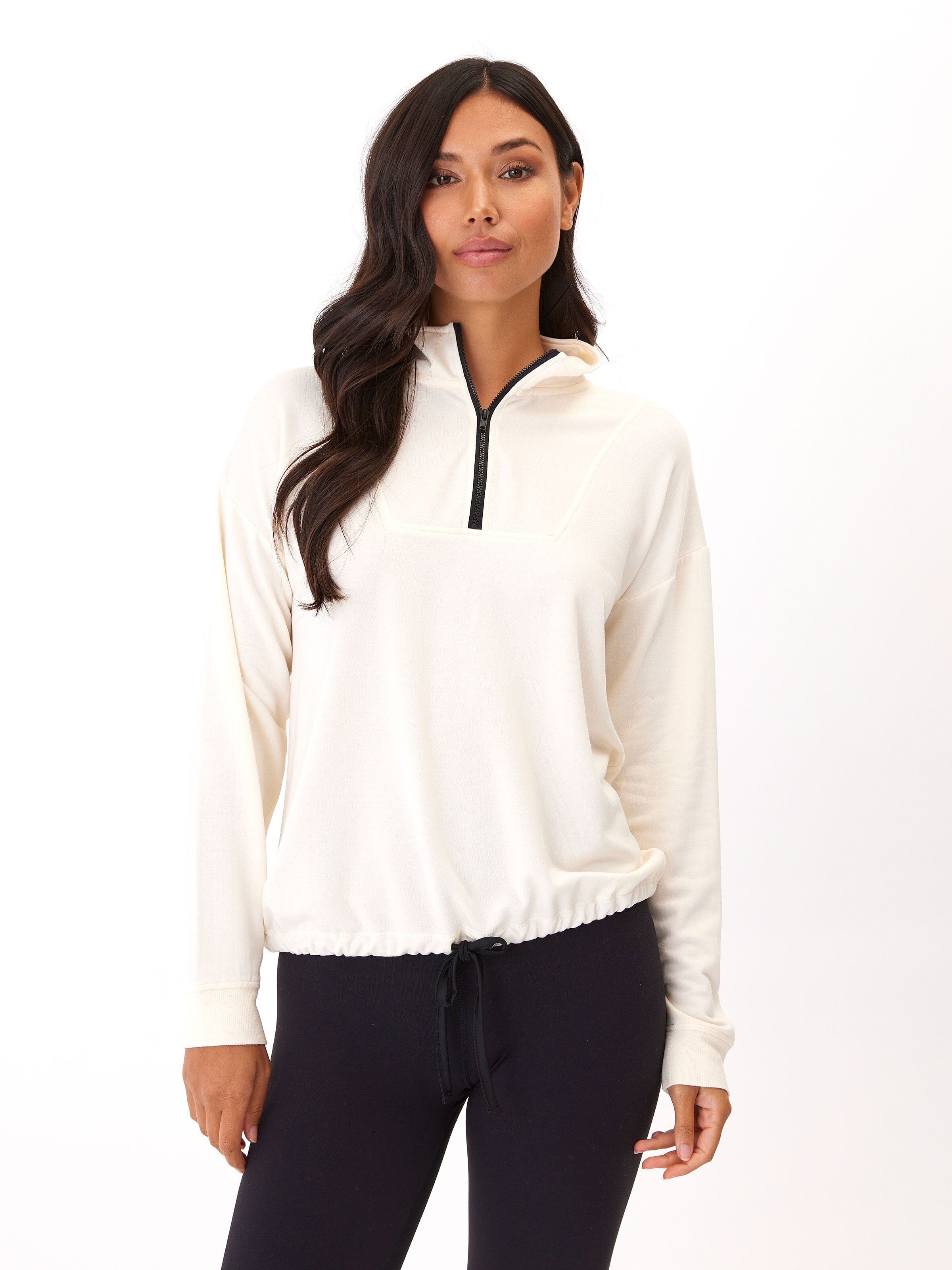 The Nyla is made from our softest and most popular FeatherLoop Fleece fabric. Designed with a relaxed fit, stretch, breathability, quarter zip, and a drawstring detail this is your new go-to layering hoodie.