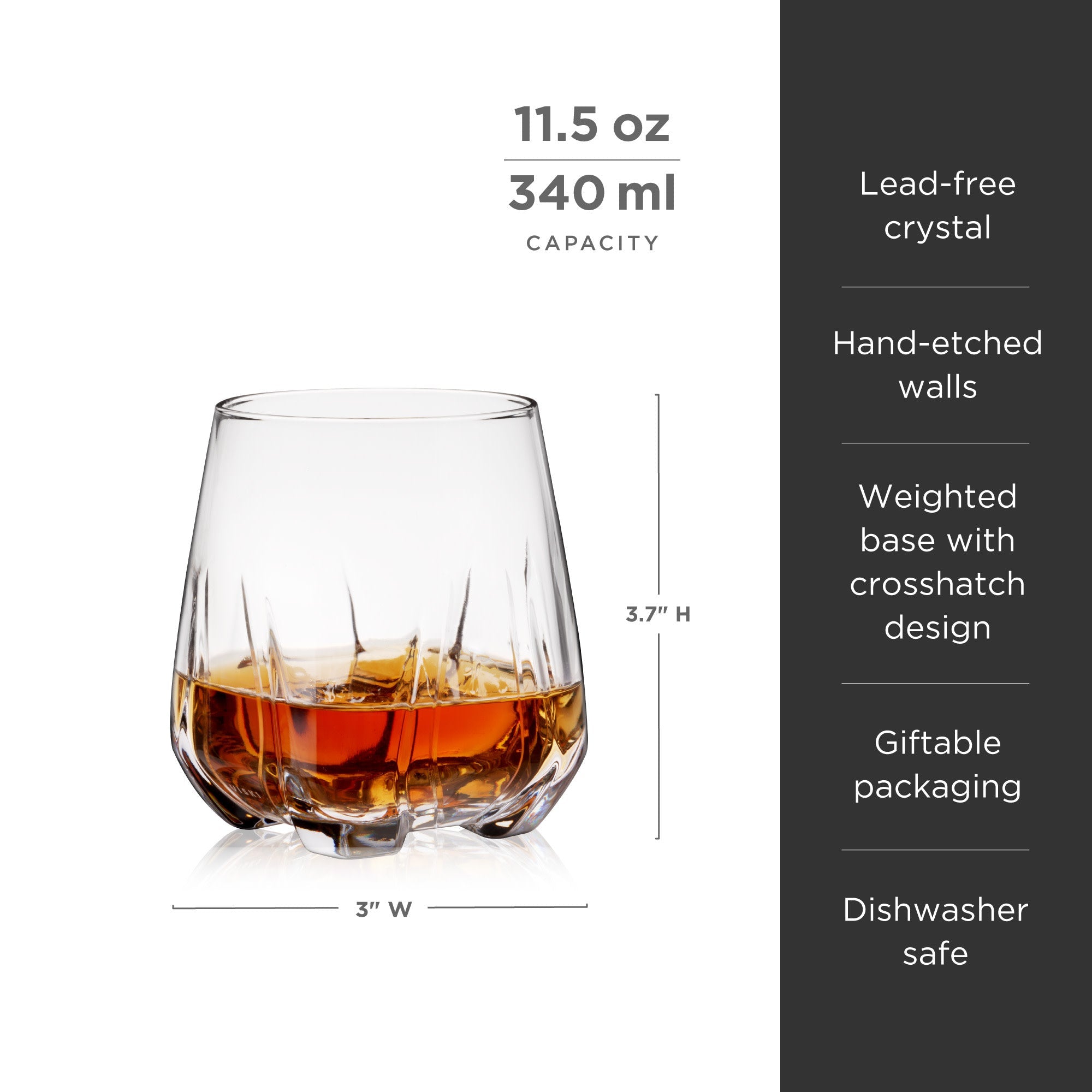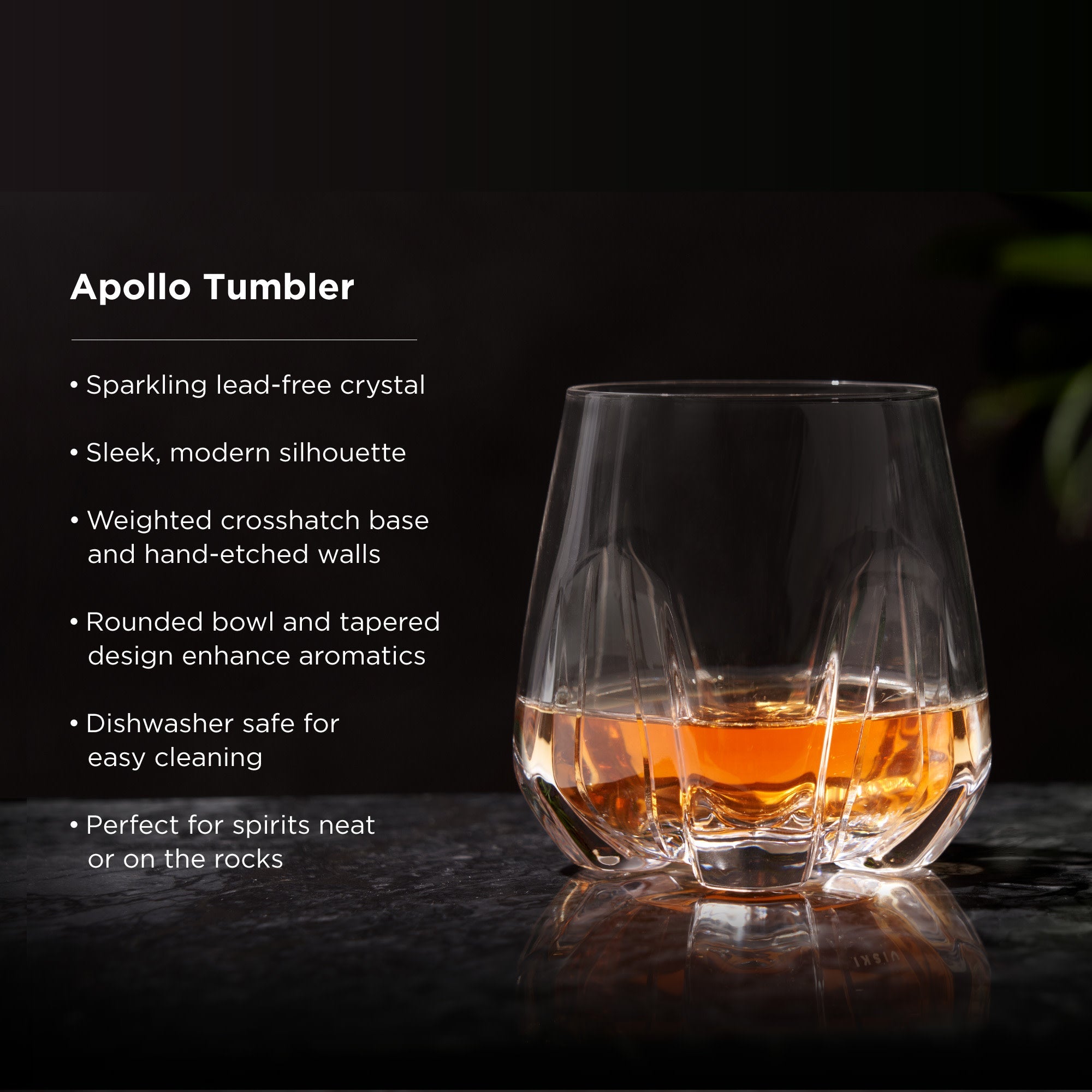 Honor your best spirits with a heavyweight glass that stands out from the crowd. Weighing 10 oz, the Apollo tumbler features a crosshatch pattern, hand-etched tapered walls, and a futuristic silhouette. Bring gravitas to every sip.