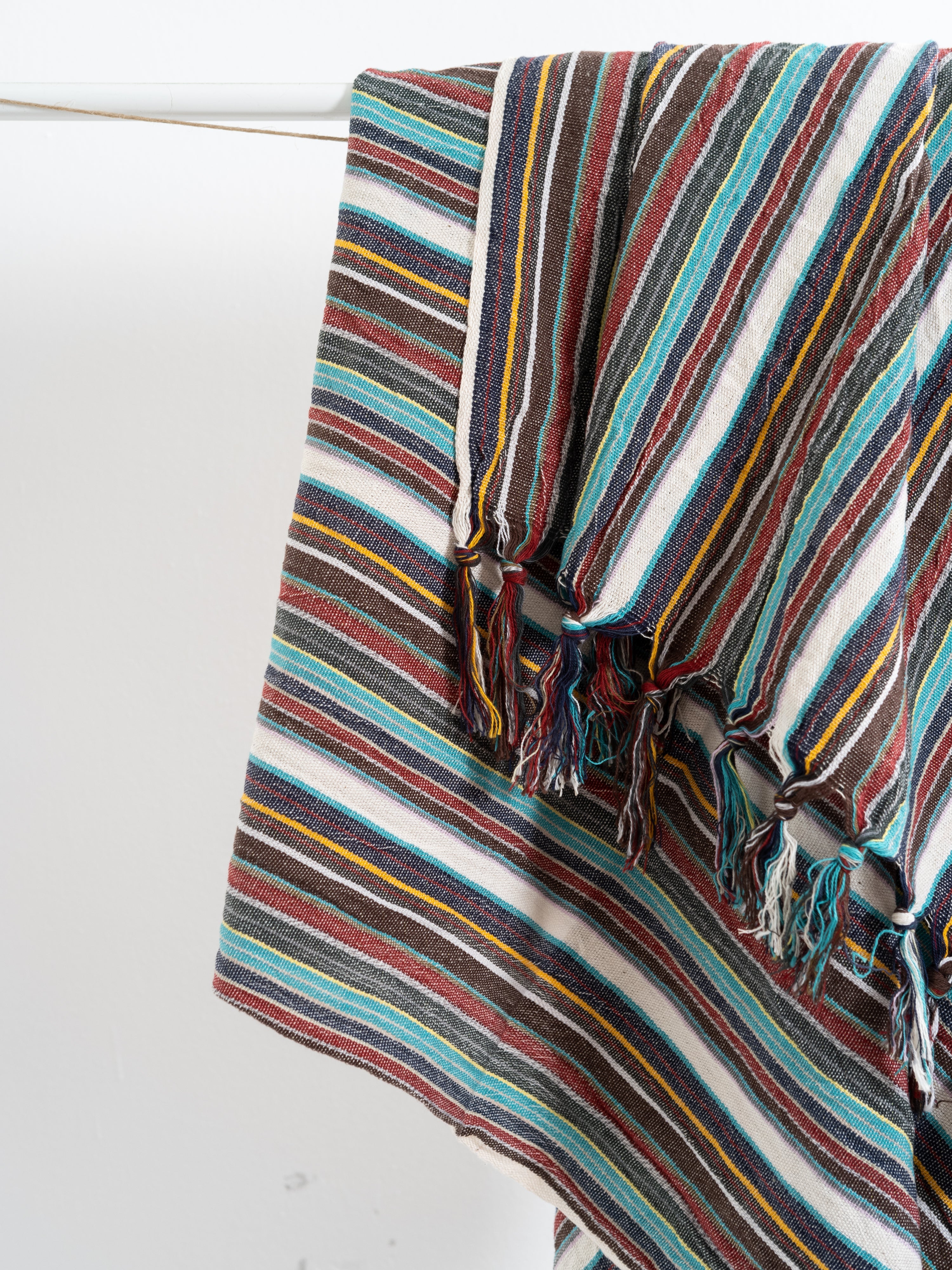 Add a pop of color to your bathroom routine with our hand-woven "Dalyan" towel. Made from a blend of sustainable cotton and linen, this towel is not only soft and comfortable, but also highly absorbent and quick-drying. The blue, red, yellow colored striped design adds a touch of fun and personality to your bathroom decor. Perfect for everyday use or special occasions, and it becomes more absorbent with each wash. With its versatility and eco-friendly aspect, this towel can be used in multiple ways, from lounging after a swim, as a beach wrap, or even as a picnic blanket. Treat yourself or gift it to a loved one, and make a difference in the world with this stylish and sustainable towel.