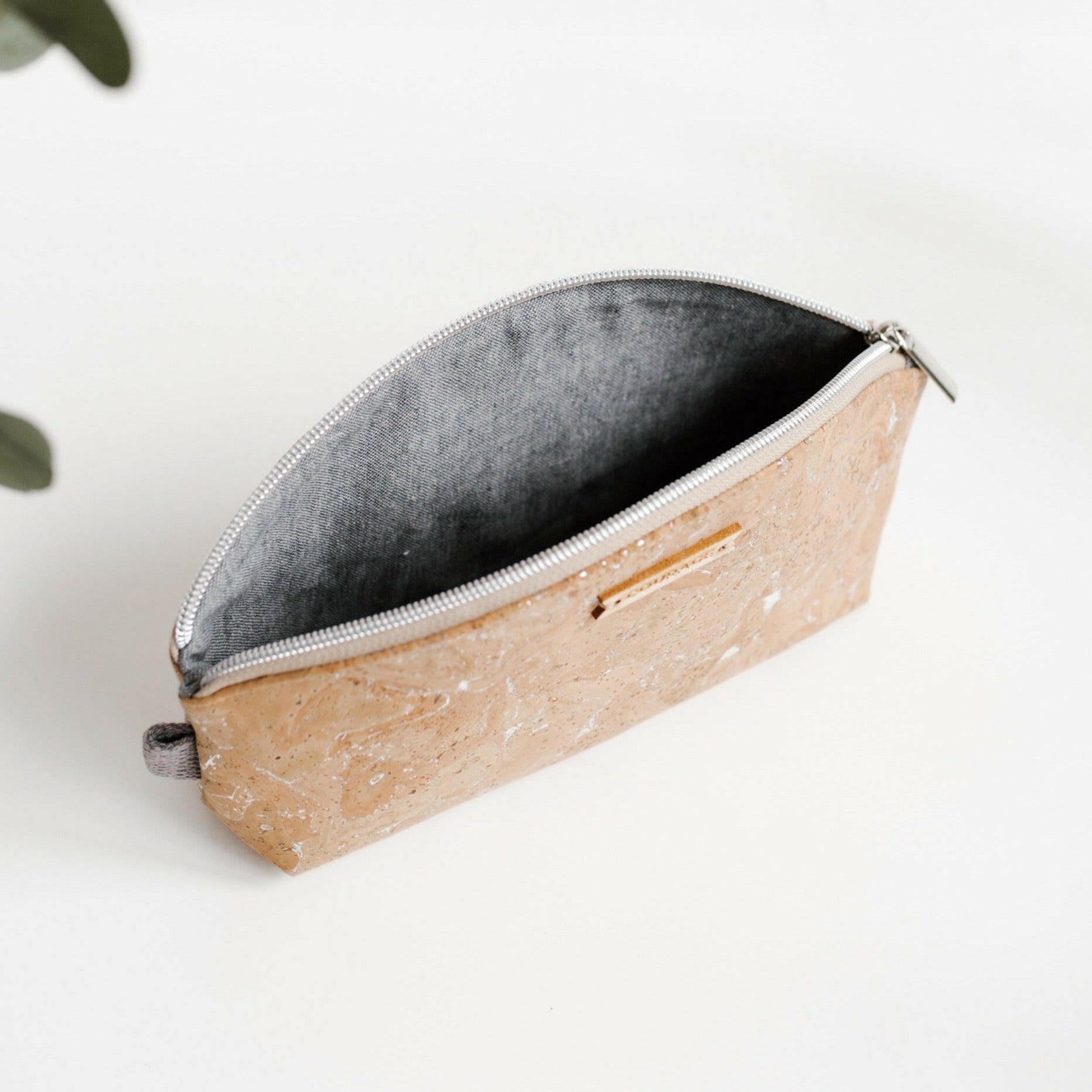 You'll love filling this curvy top bag with all your favorite goodies and notions. It's the perfect size for organizing makeup brushes, writing and art supplies, or any little bits that need containing. Cork fabric makes this bag a memorable RULE BREAKER, just like you!