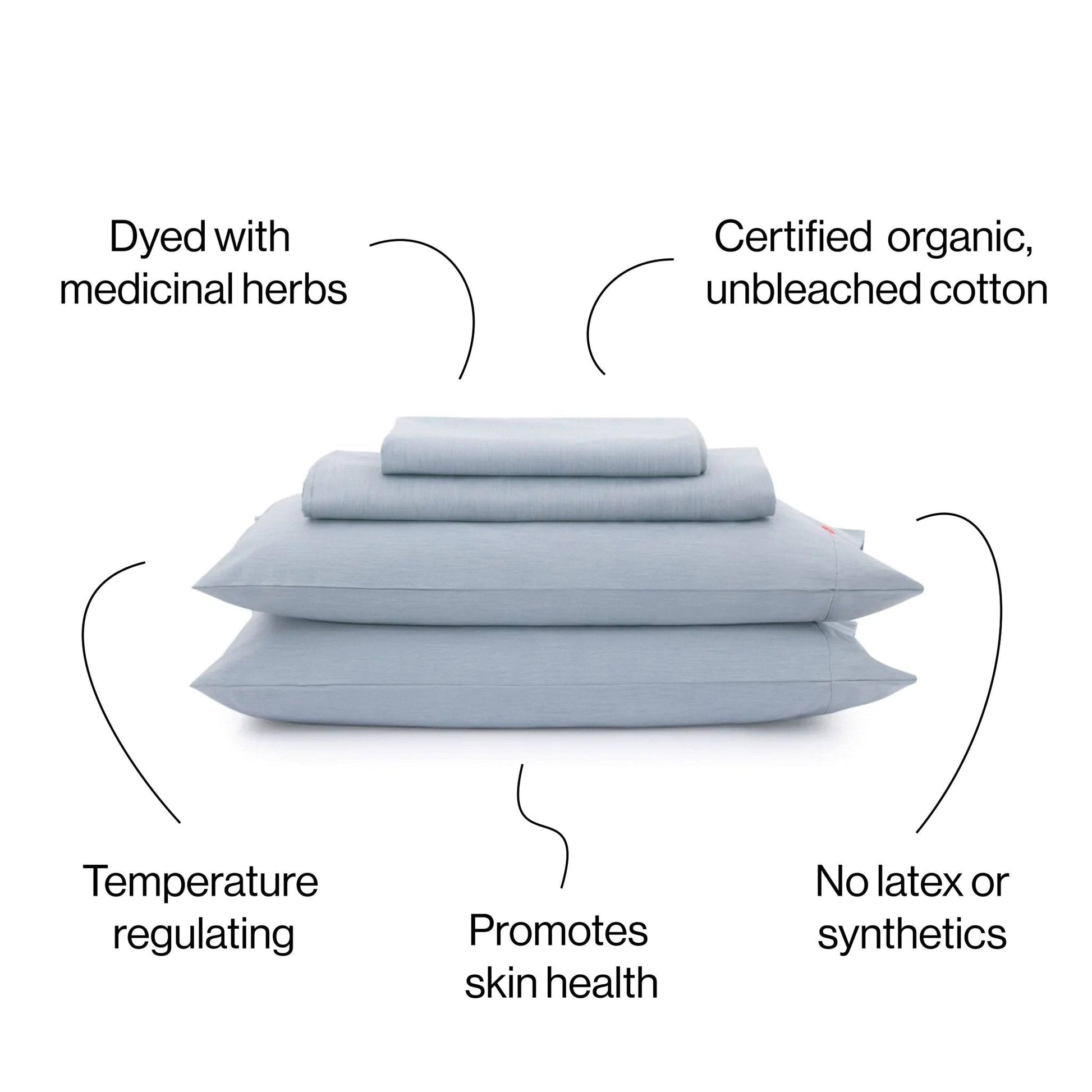 Free from petrochemicals, microplastics, allergens and toxins, AIZOME’s Organic Sheet Set is perfect for eczema, sensitive skin, or anyone seeking a total toxin-free sleep sanctuary.