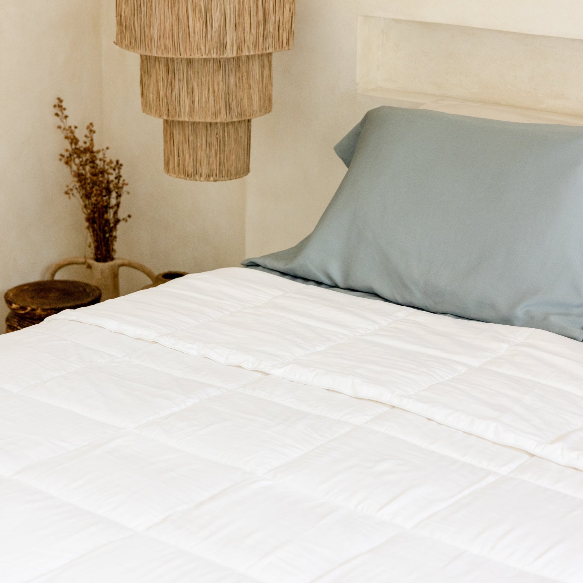 Our Silk Duvet Insert is filled with 100% natural silk, and encased in 100% organic bamboo viscose. The silk duvet is soft, breathable and hypoallergenic. Both fills and shell are OEKO-TEX certified for not containing any harmful chemicals.