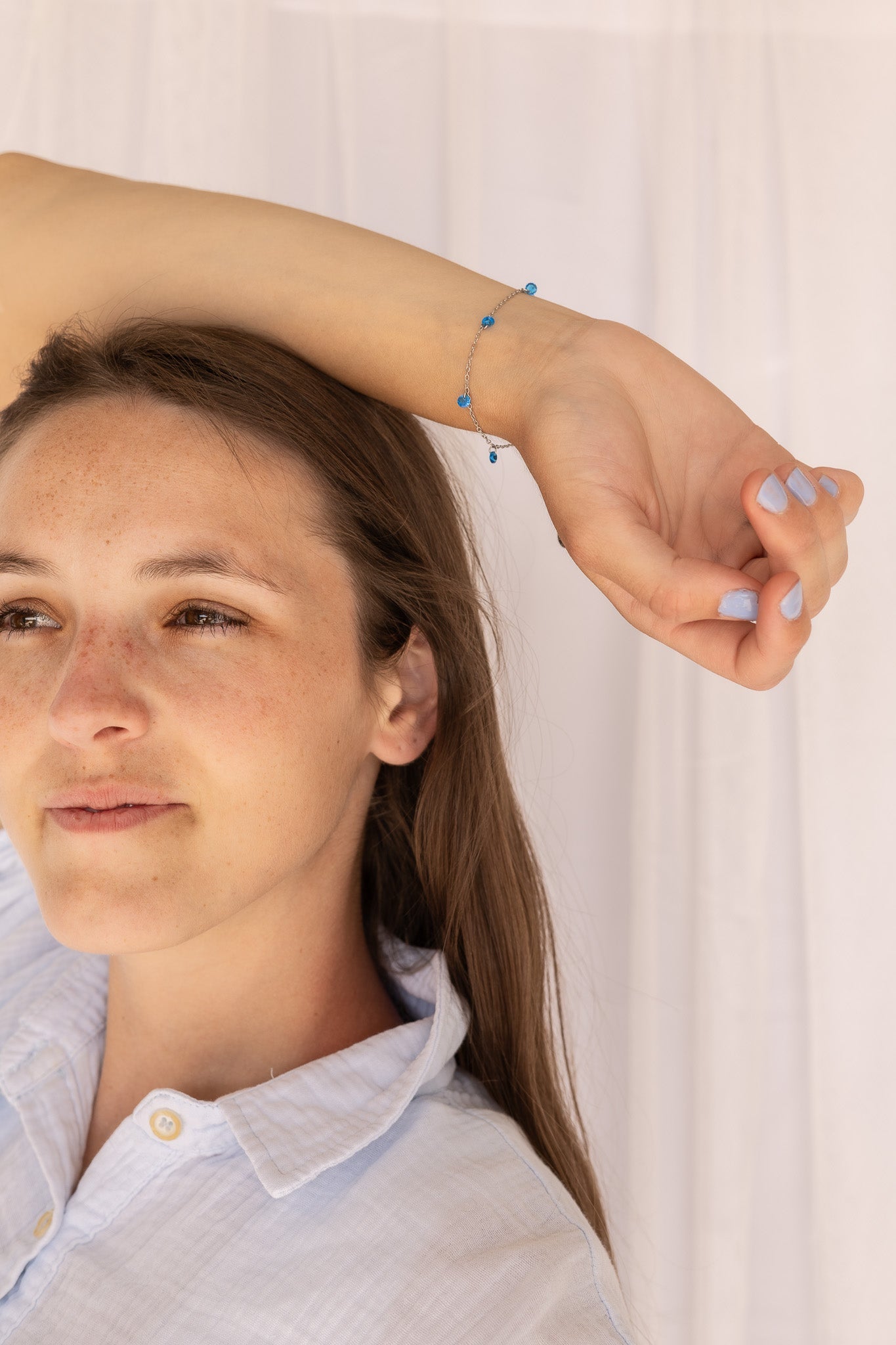 Meet the Madison Bracelet! (Potentially one of the cutest bracelets to ever exist??) I loved the idea of designing a bracelet that was super dainty but still had some movement and fun to it, and maybe a little pop of color too. The bracelet checks ALL those boxes! It features tiny little blue CZ charms that are sure to stand out. We love this bracelet for all kinds of outfits, occasions, and seasons, and we loveee to layer it with other bracelets too! I truly cannot say enough good things about this bracelet. Grab yours ASAP!