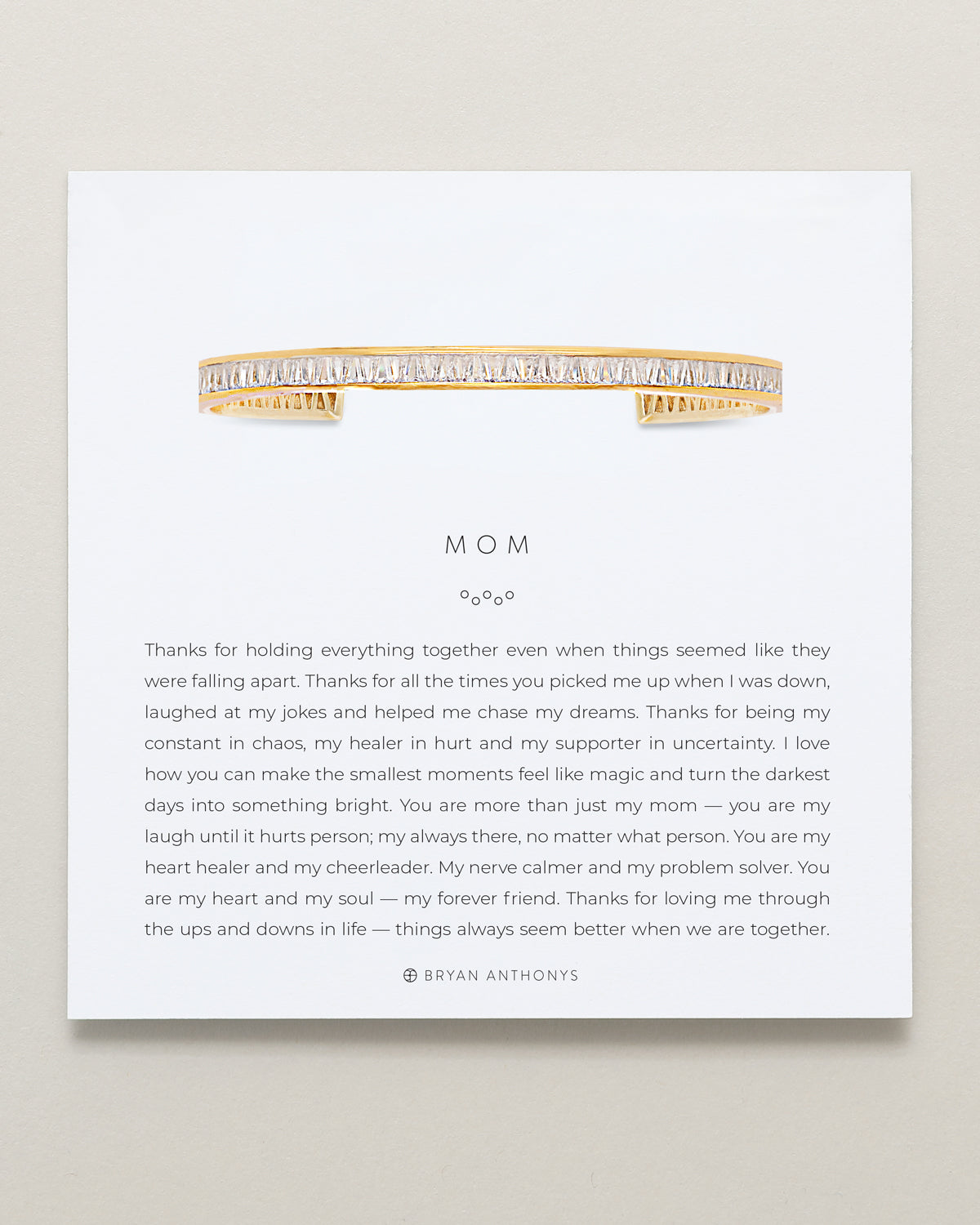 Thanks for holding everything together even when things seemed like they were falling apart. Thanks for all the times you picked me up when I was down, laughed at my jokes and helped me chase my dreams. Thanks for being my constant in chaos, my healer in hurt and my supporter in uncertainty. I love how you can make the smallest moments feel like magic and turn the darkest days into something bright. You are more than just my mom — you are my laugh until it hurts person; my always there, no matter what person. You are my heart healer and my cheerleader. My nerve calmer and my problem solver. You are my heart and my soul — my forever friend. Thanks for loving me through the ups and downs in life — things always seem better when we are together.