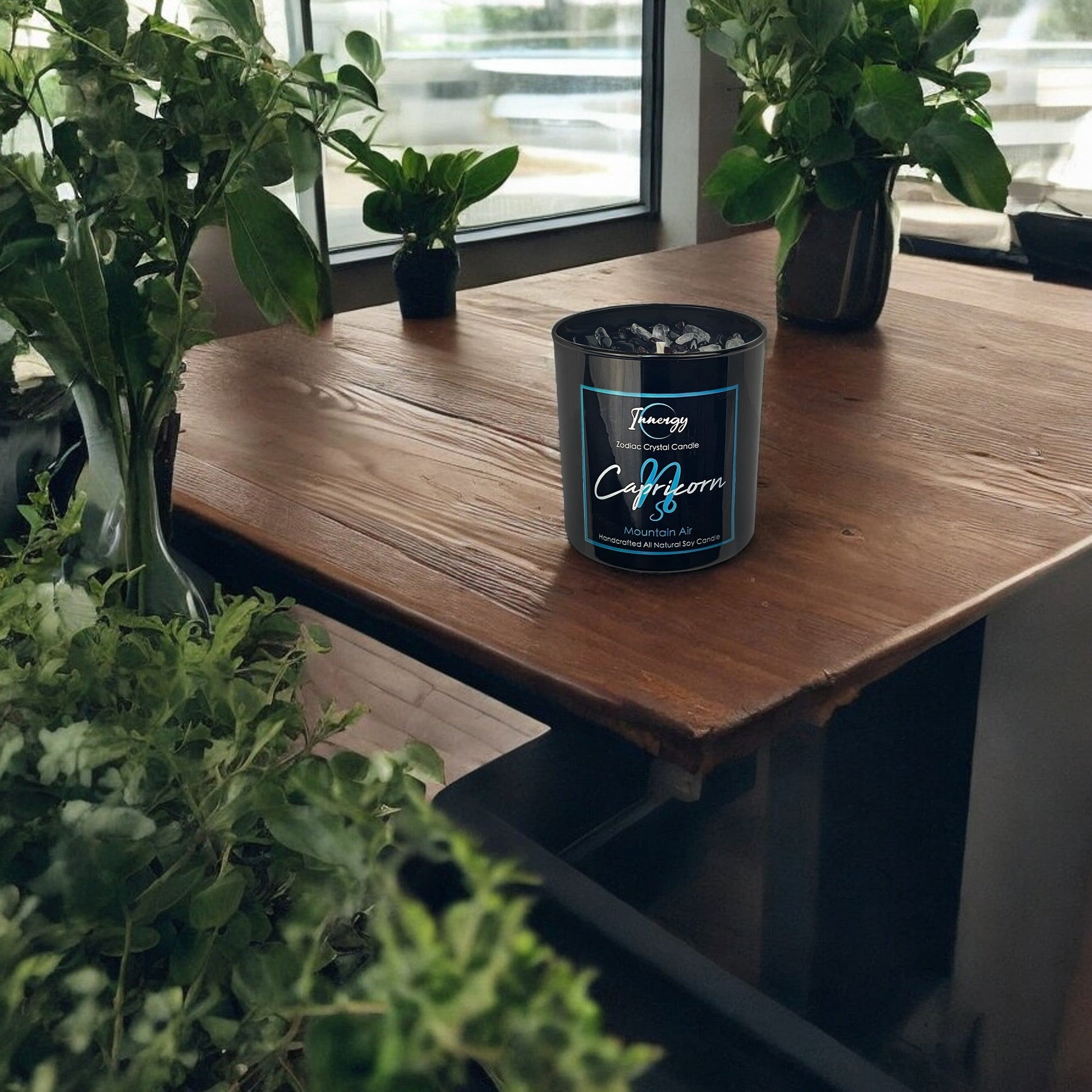 Discover the grounding essence of the Capricornus (Capricorn) Zodiac Crystal Candle, artfully designed to embody the steadfast and ambitious spirit of this earth sign. The Capricornus Zodiac Crystal Candle radiates the refreshing "Mountain Air" scent, an earthy and revitalizing blend that captures the essence of cedarwood, the freshness of orange, the complexity of elemi, and the depth of guaiac wood. Complemented by the invigorating notes of peppermint and eucalyptus, with subtle hints of nutmeg and birch tar, this fragrance is a tribute to the pragmatic, disciplined, and resilient nature of Capricorn.