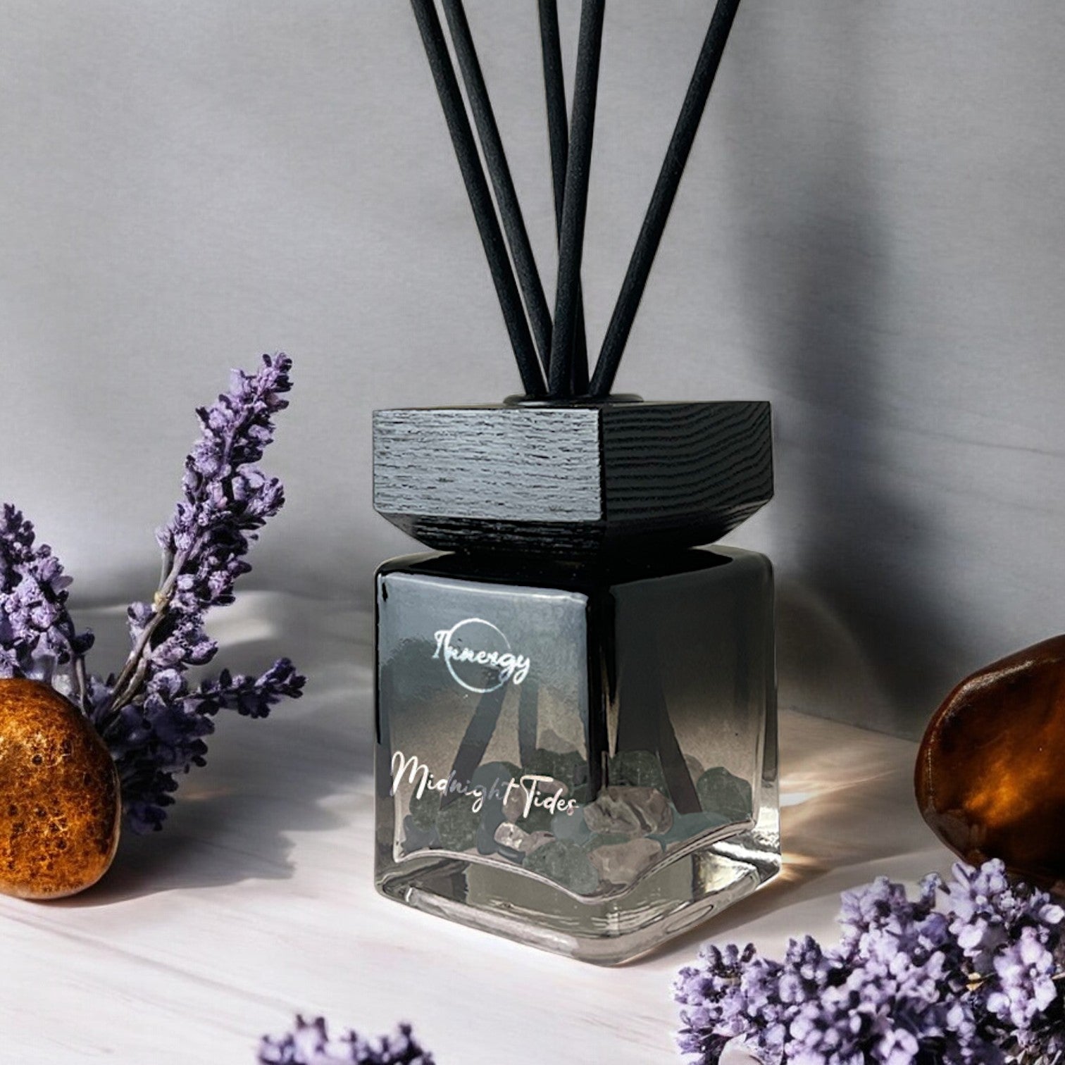 Embark on a journey of enchanting duality with our Crystal-Enhanced Reed Diffuser, featuring the captivating scent of Midnight Tides. Immerse yourself in the delightful notes of lavender, amber, eucalyptus, and patchouli, carefully curated to captivate the ever-curious and versatile spirit.