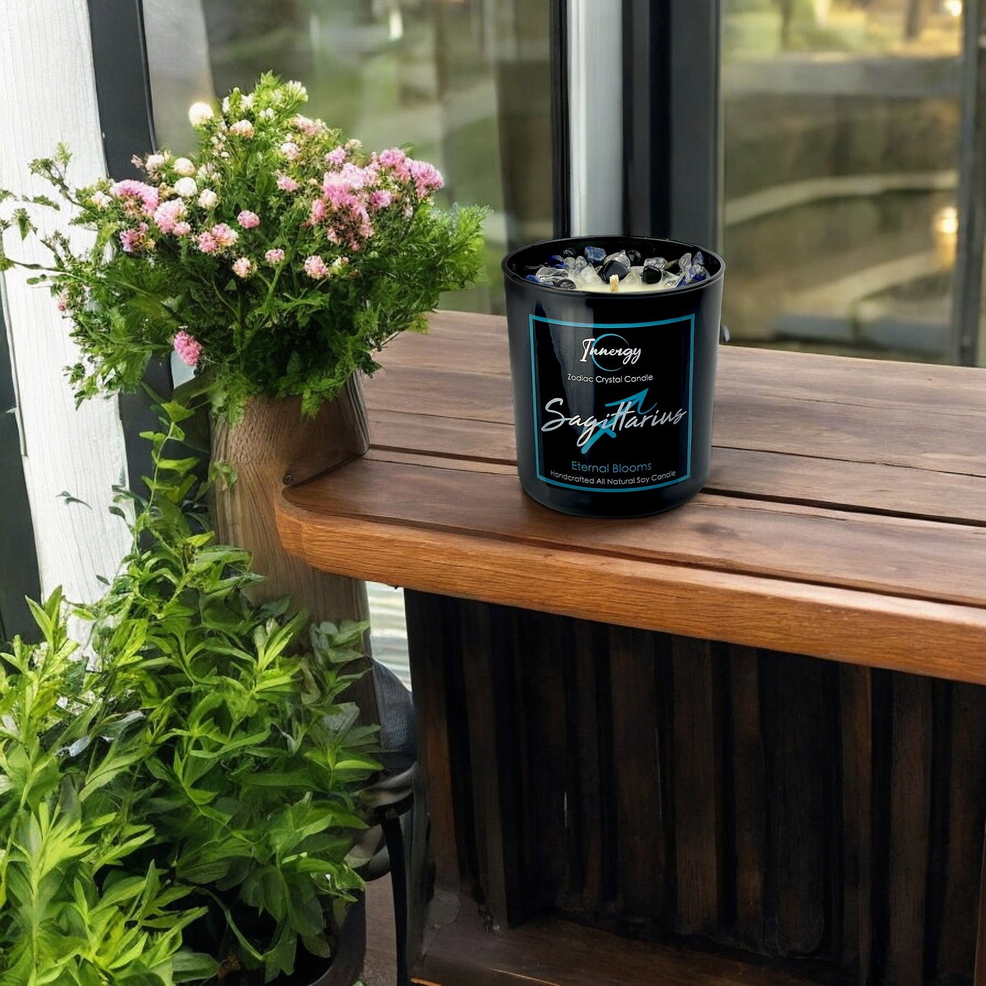 Embark on an adventure of fragrance and energy with the Sagittarius Zodiac Crystal Candle, crafted to capture the essence of the free-spirited and optimistic Sagittarius. The "Eternal Blooms" scent is a vibrant bouquet of gardenia, brightened with the zesty tang of lemon peel, and enriched with the sensual depth of tuberose and jasmine. This invigorating blend brings a sense of positivity and joy, mirroring the adventurous and enthusiastic spirit of Sagittarius.