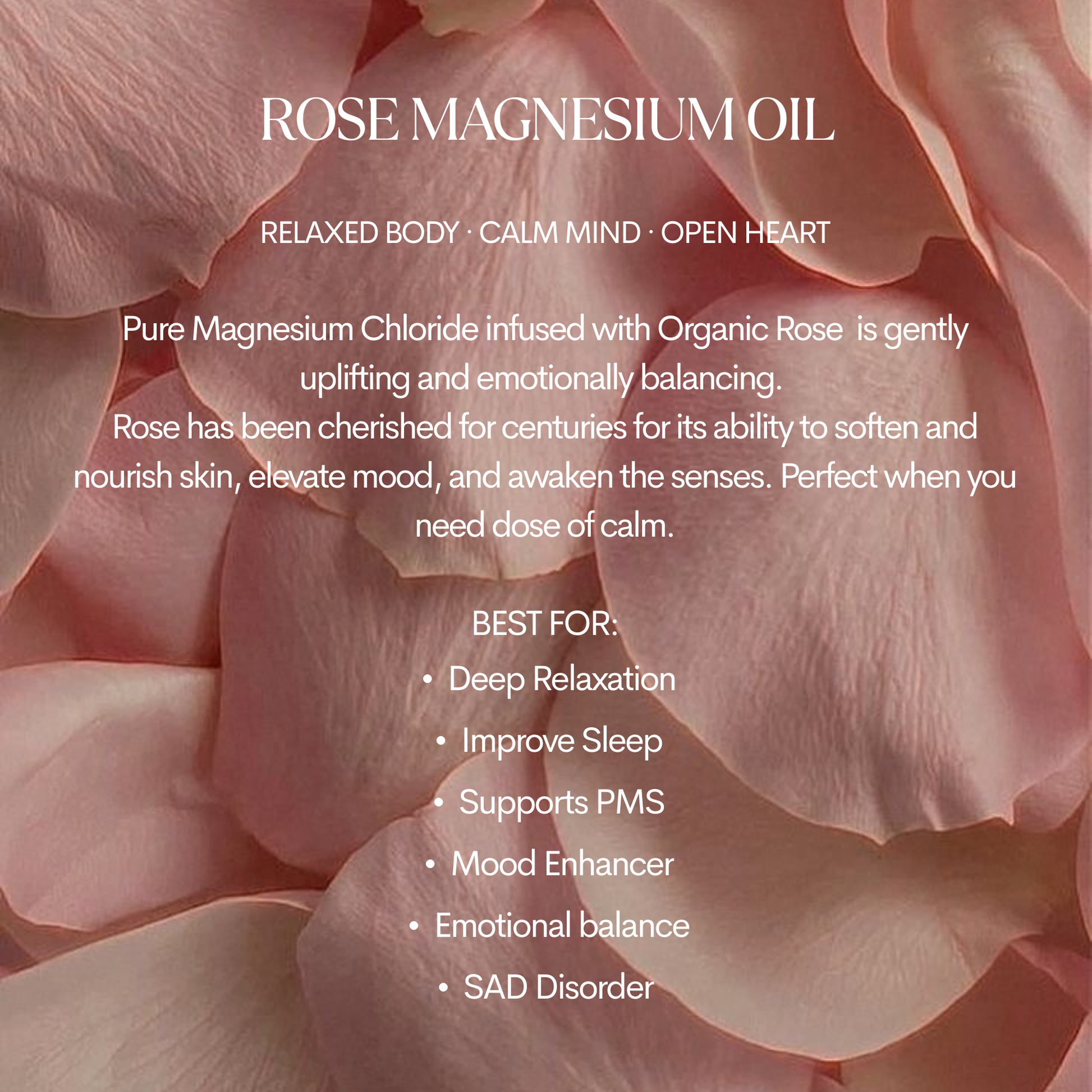 Meet Rose Magnesium Oil A soothing, skin-nourishing magnesium treatment designed to calm the nervous system, soften skin, and restore balance — naturally.