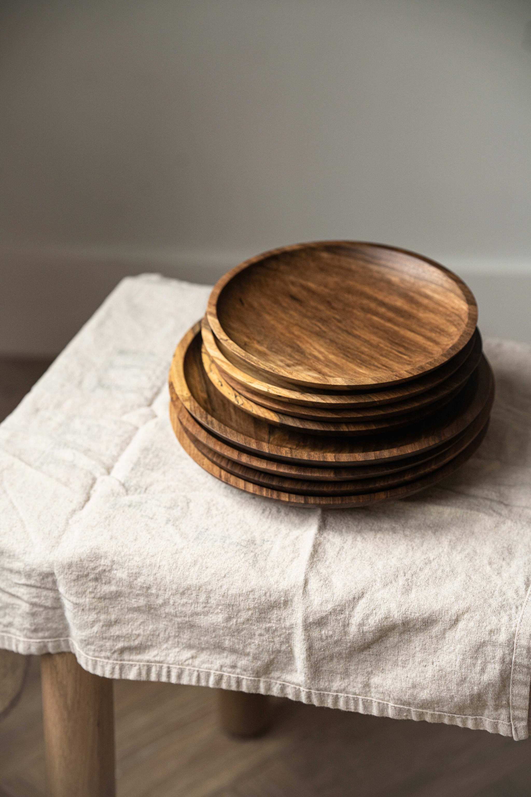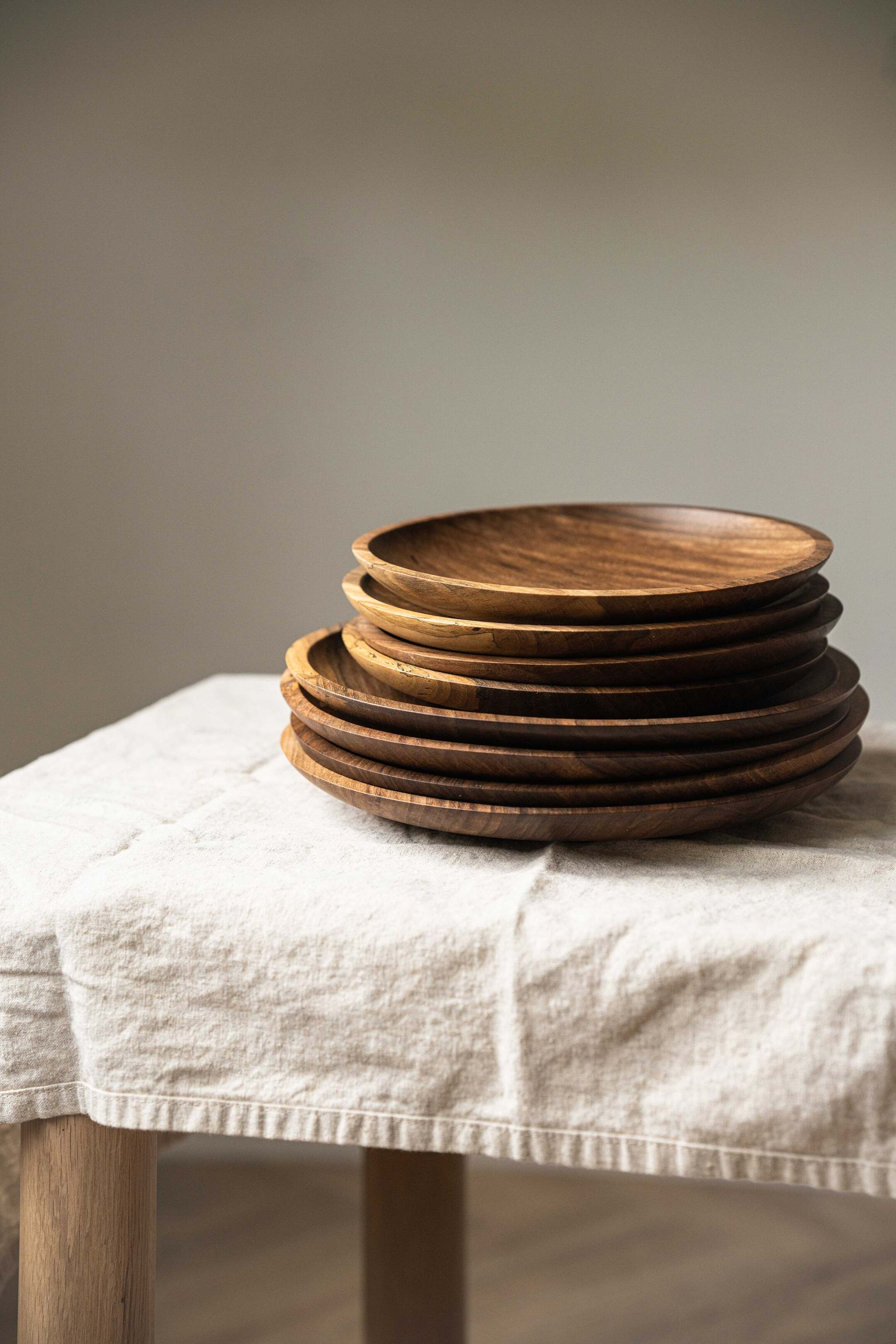 These gorgeous wooden plates get their start as a plank of walnut wood, hand-carved and shaped to create a curve-rimmed round to layer all your favorite food on top. Each plate exhibits its own charming combination of wood grain, color variation, and carved side. Let us impress you with wood versatility, the comfort it brings to your kitchen and so many ways you can use these plates in your daily life.