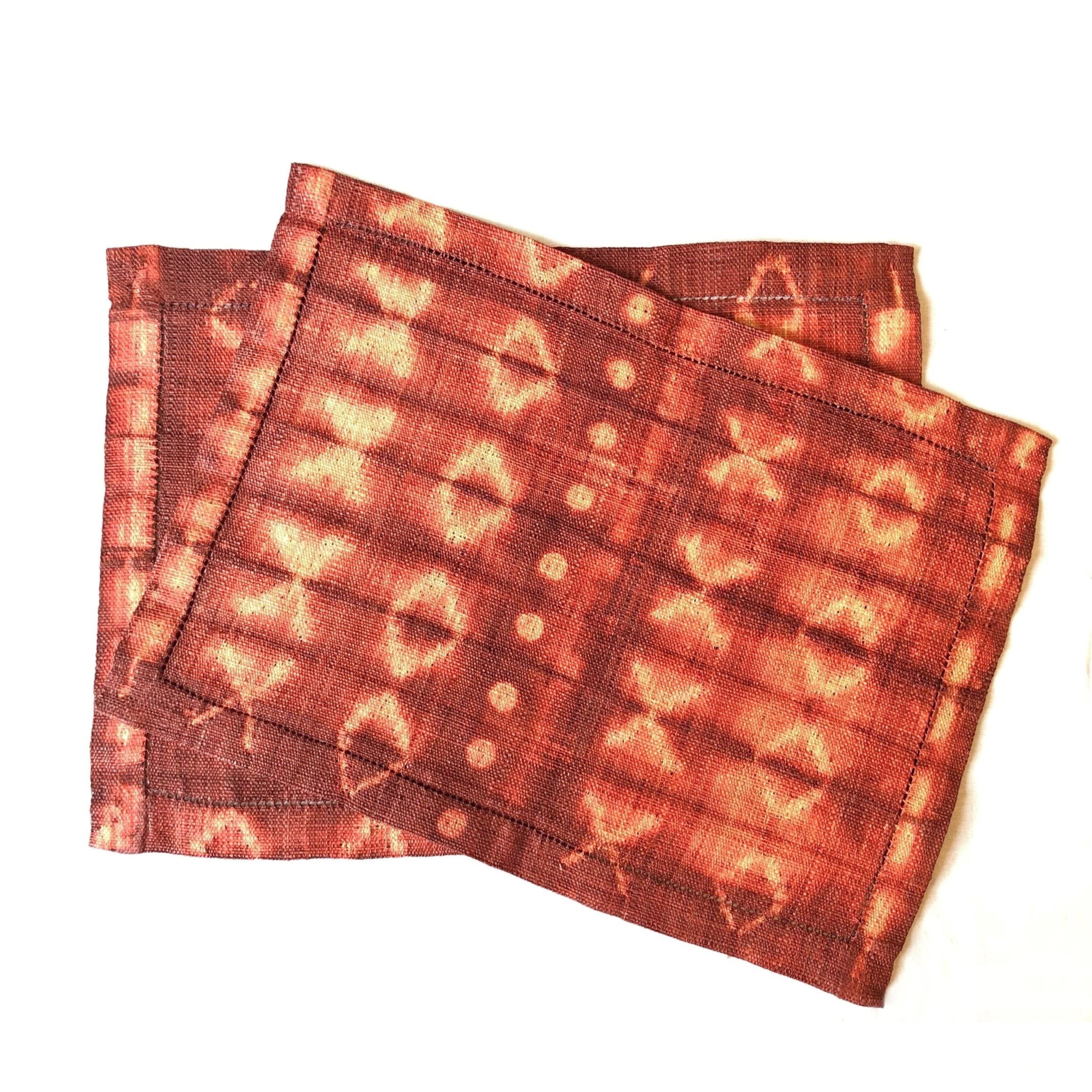 Raffia Shibori Placemat (Pair) - Cocoon & Moth Pattern - Egyptian Red