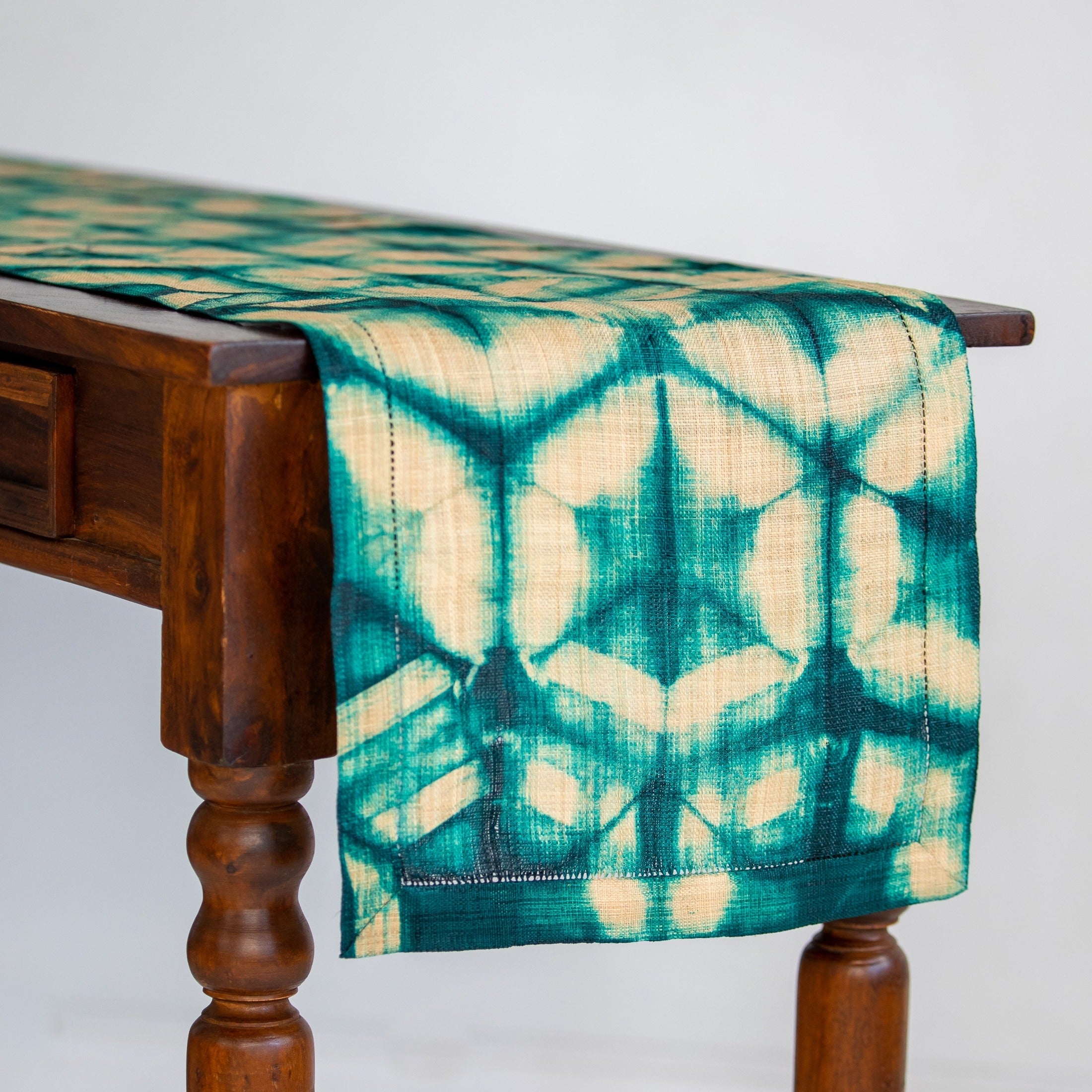 Raffia Shibori Table Runner - Turtle Pattern - Emerald