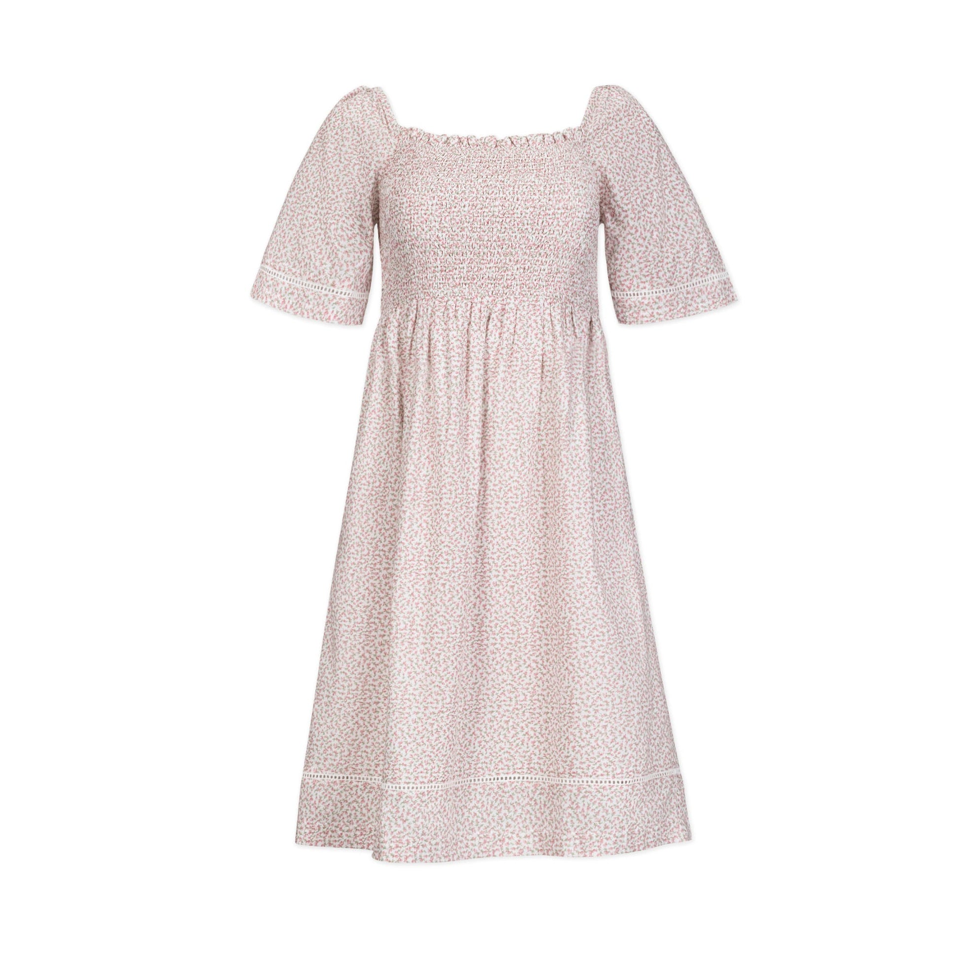 Where pretty meets comfortable. Our beautiful floral print dress has light and airy bell sleeves, delicate trim, and a stretchy and flattering smocked bodice. Cut from our soft organic cotton batiste, fully lined in organic cotton, and has pockets. You'll want to wear this easy style all spring and summer long.
