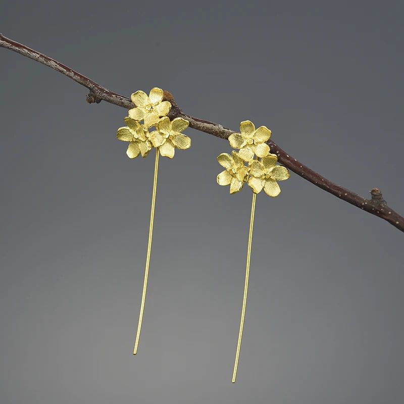 Introducing our exquisite Forget-Me-Not Earrings, meticulously crafted from 925 sterling silver and elegantly plated with 18k gold. This timeless piece showcases three intricately detailed forget-me-not flowers, symbolizing everlasting love and remembrance.