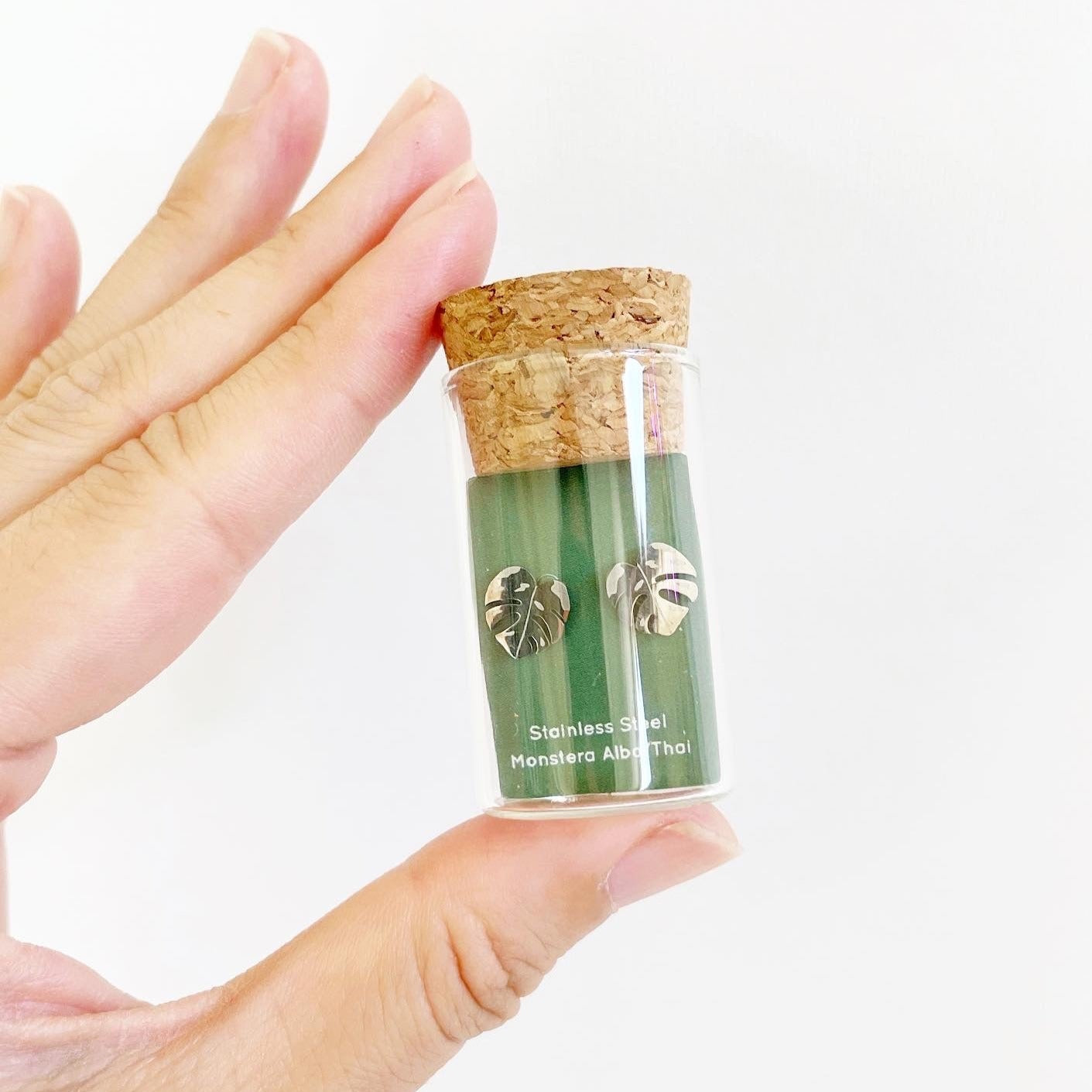 Plant Dosage | Hypoallergenic Tiny Dainty Monstera Albo/Thai earring studs | Gift for Plant Mama Daddy Parent