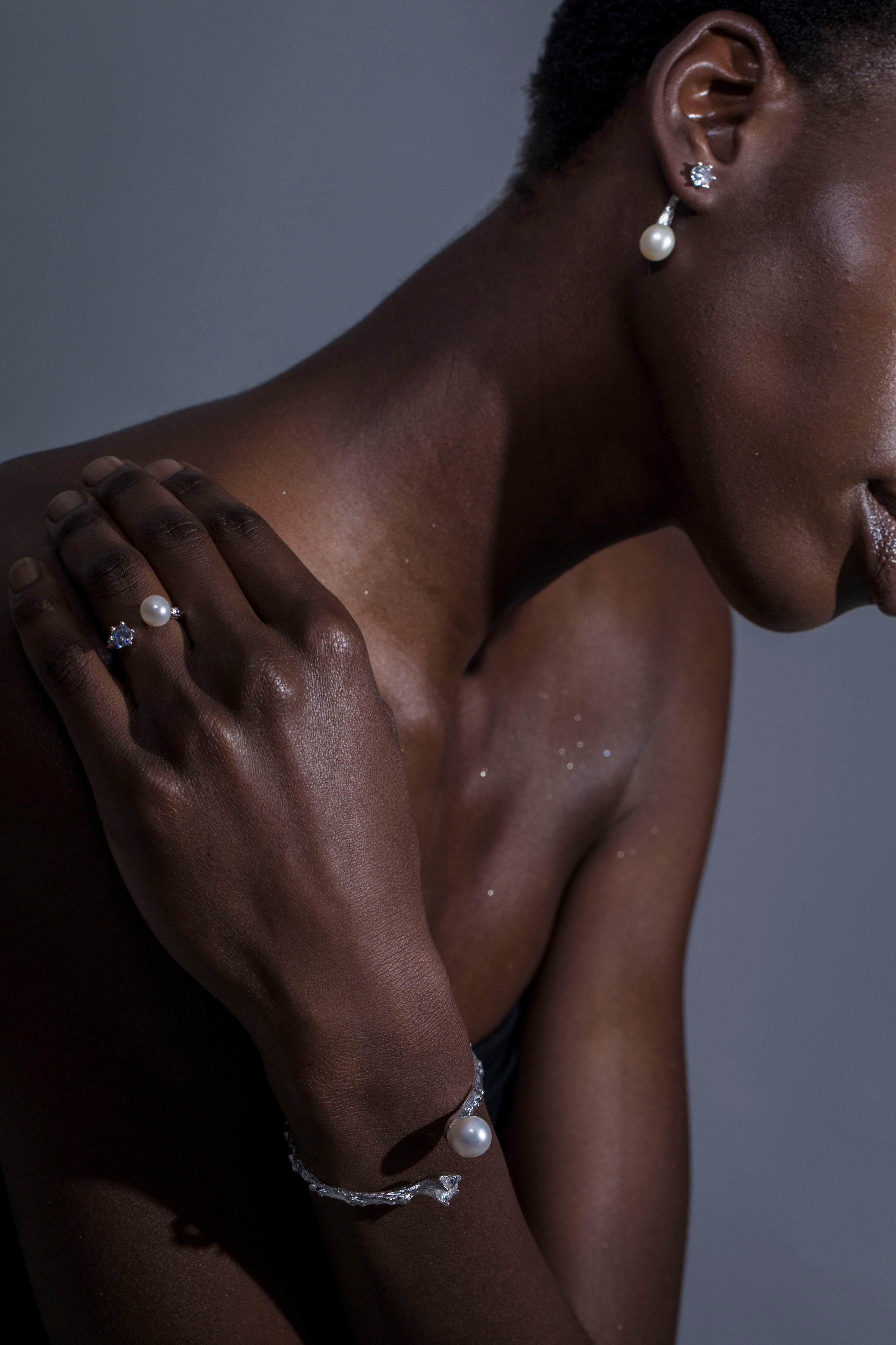 The unique design of these earrings allows for versatility in styling. You can wear them as simple studs for a classic look, or add the branch and pearl attachment to the back of your ear lobe for a more dramatic and edgy look. This feature makes these earrings perfect for transitioning from a daytime to a nighttime look.
