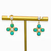 Adorn your ears with these exquisite gold-plated earrings, featuring vibrant turquoise stones that are designed to bring elegance and sophistication to any outfit. Each earring features a meticulously crafted cross-shaped pendant, embellished with intricate detailing and a touch of shimmer. The top and central pearls adds a sparkling focal point, enhancing the overall allure of the design.