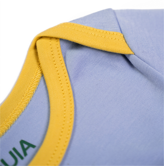 Long Sleeve Bodysuit in Chambray Blue with Yellow