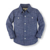Our classic long sleeve button down chambray shirt is cut from super soft organic cotton and is the "goes-with-everything" wardrobe staple he won't want to take off. Features matte buttons at the chest pockets, cuffs, and center front. Pairs perfectly with our beautiful collection of organic cotton, sweaters, pants, and shorts!