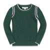 Our stylish crew neck pullover sweater is crafted in soft organic cotton that will keep your boy warm all season long. Features sporty stripe piecing at the shoulder seams, rib knit trim at the cuffs and collar, and a pop of contrast tipping. Pairs perfectly with our collection of organic cotton button downs and pants.