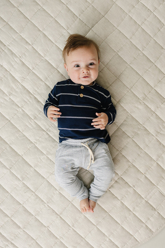 Navy Stripe Long Sleeve Tee - 95% Cotton