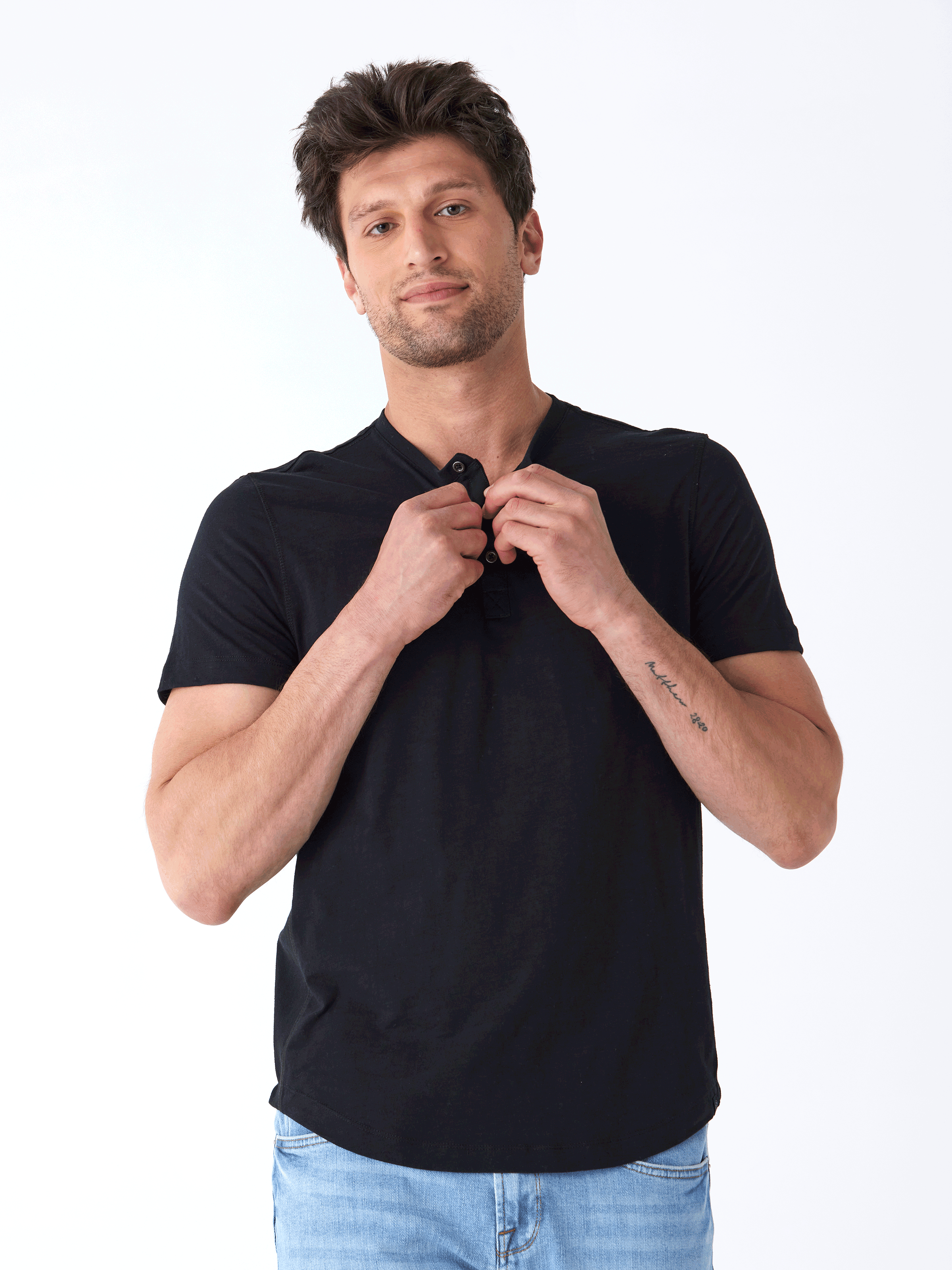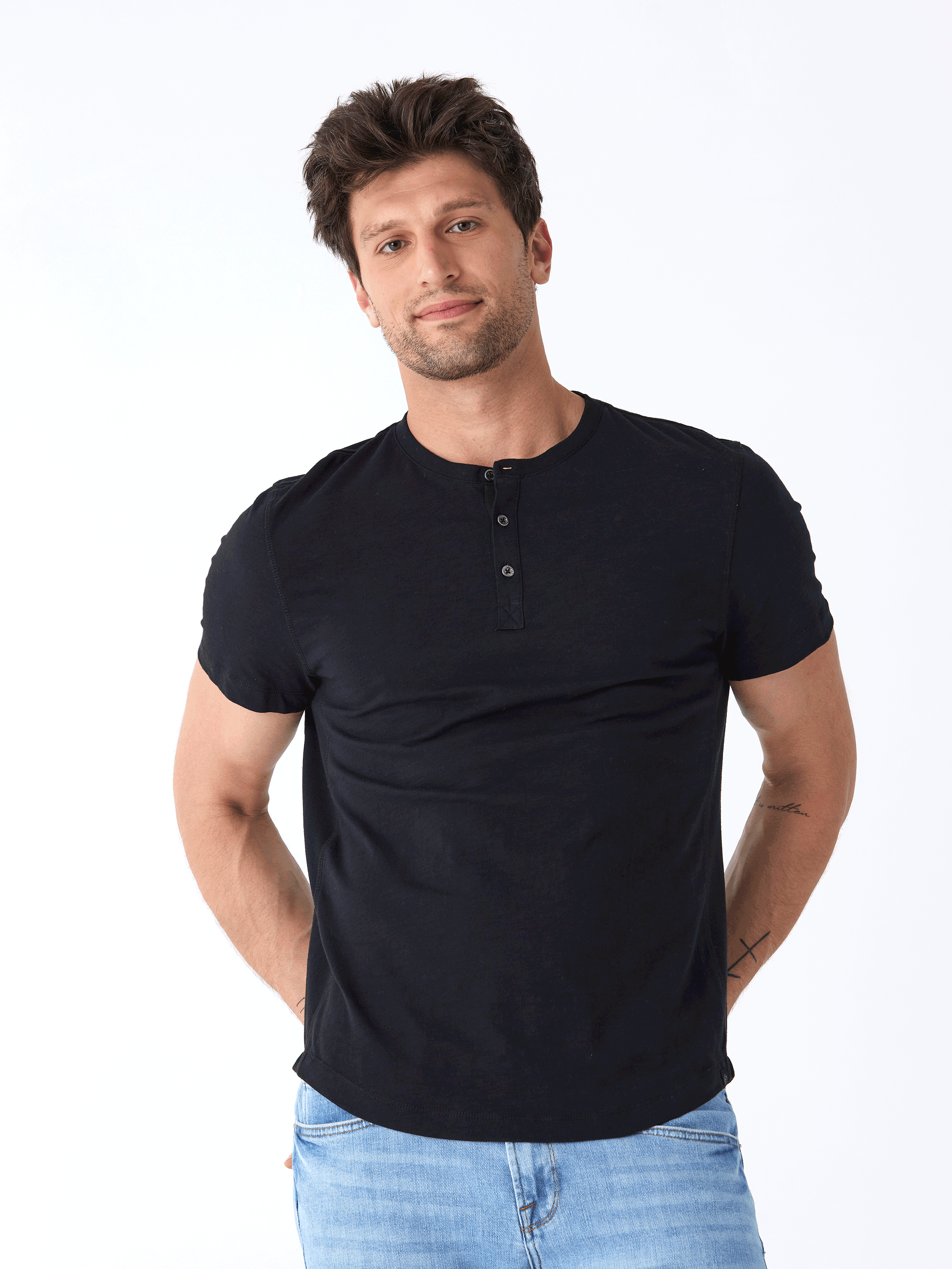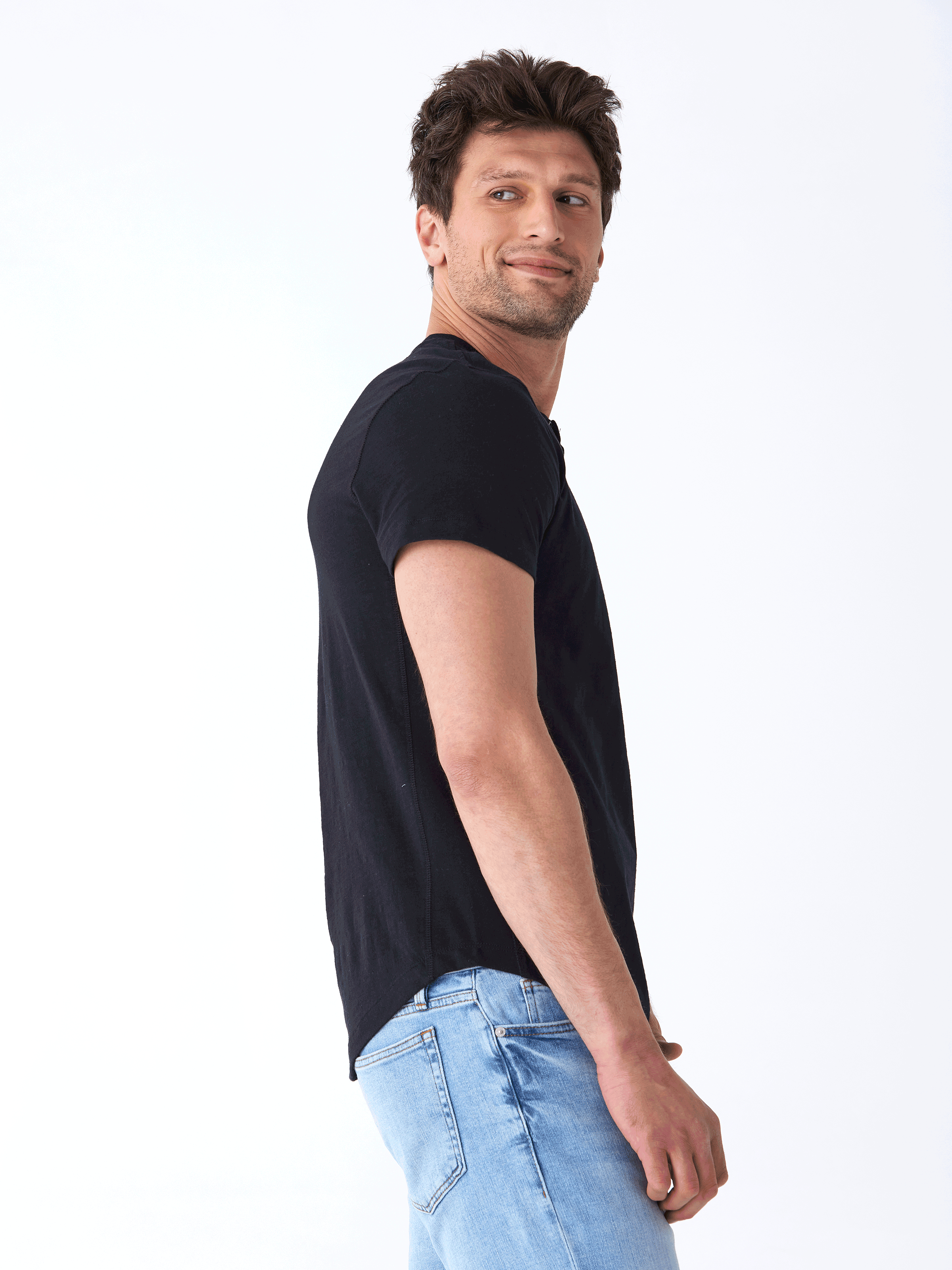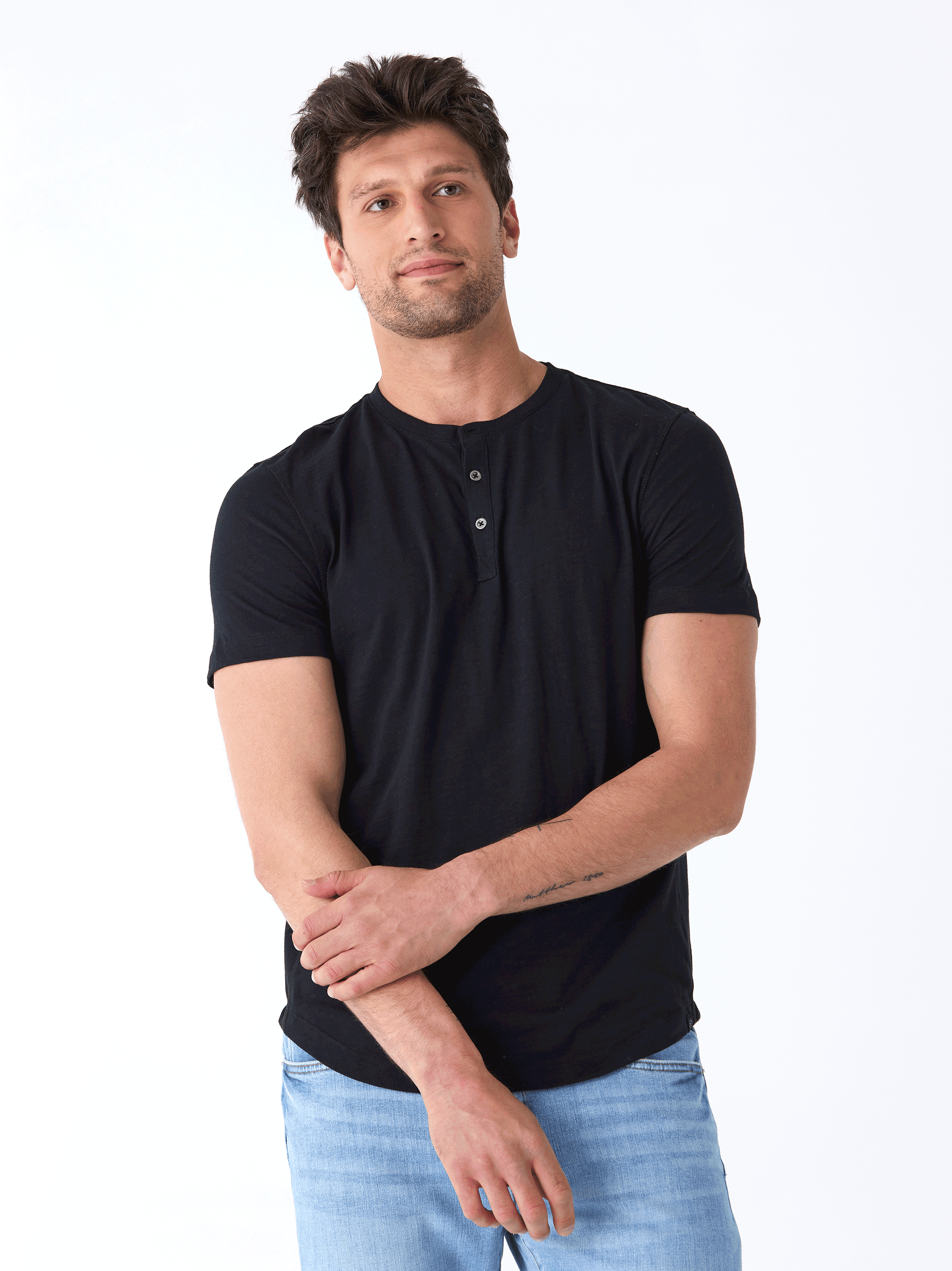 Elevate your everyday look with the Heath Slub Jersey Short Sleeve Henley. Made from 100% organic cotton, it boasts a textured look and elevated neckline. The three button detail adds a touch of sophistication to this versatile piece. Feel good and look good with this environmentally-friendly essential!