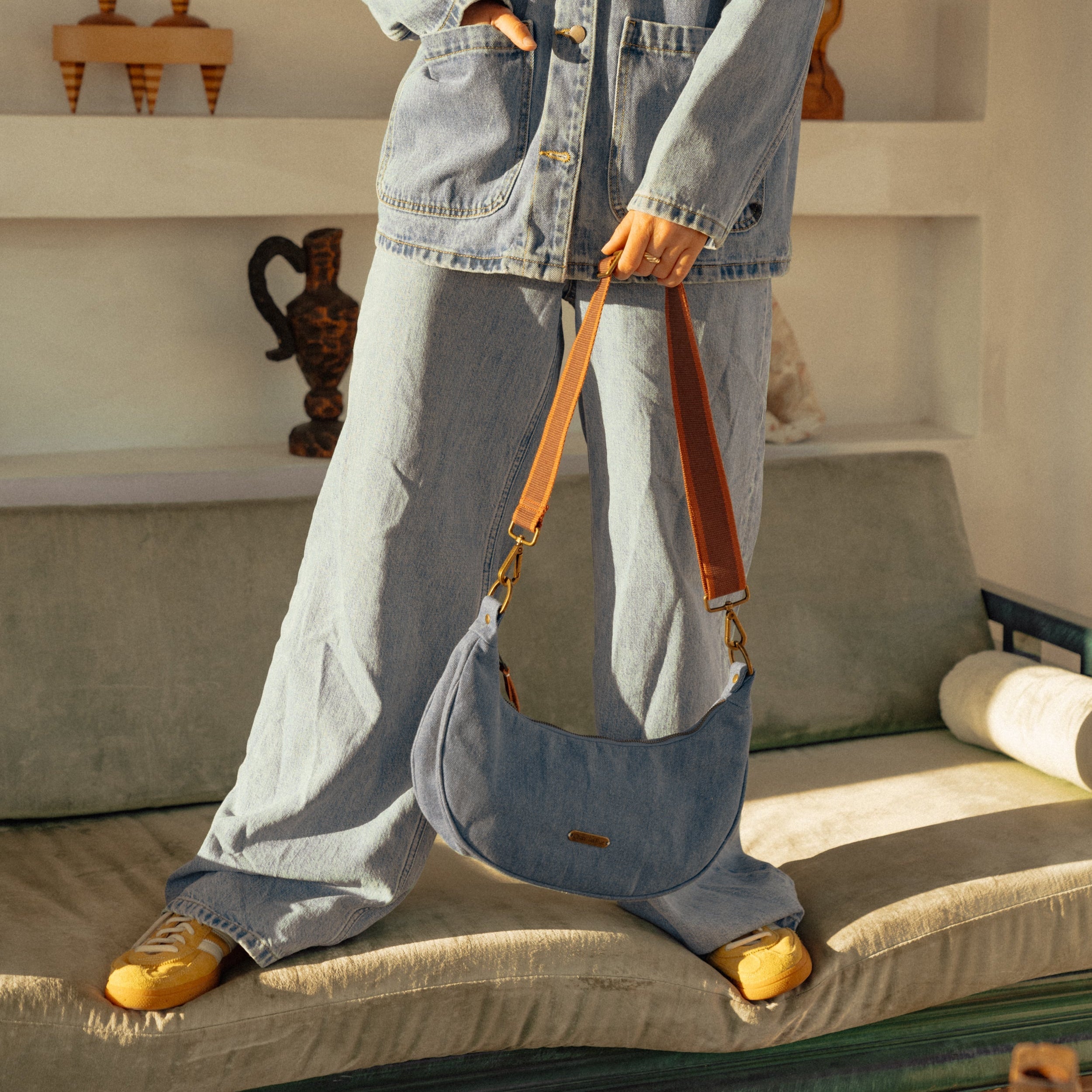Effortless, cool, and eternally stylish, the Jackie Bag is as timeless as your favorite pair of jeans. Crafted from high-quality cotton denim, it’s designed with both durability and style in mind. Featuring a chic bronze metal hardware and a genuine leather zipper pull, this bag brings an elevated, yet laid-back vibe to any outfit. Wear it from day to night, and with every season – the Jackie Bag never goes out of style.