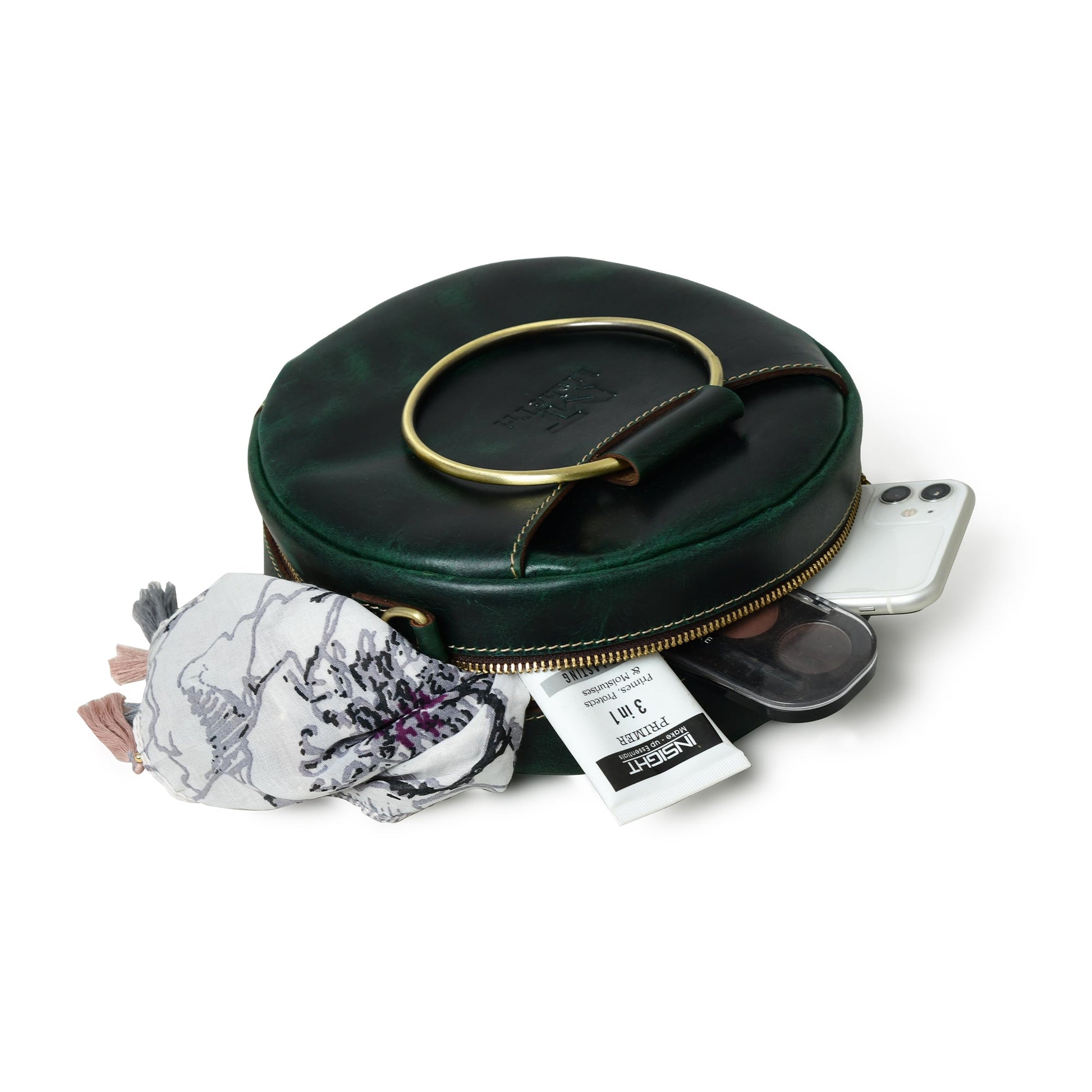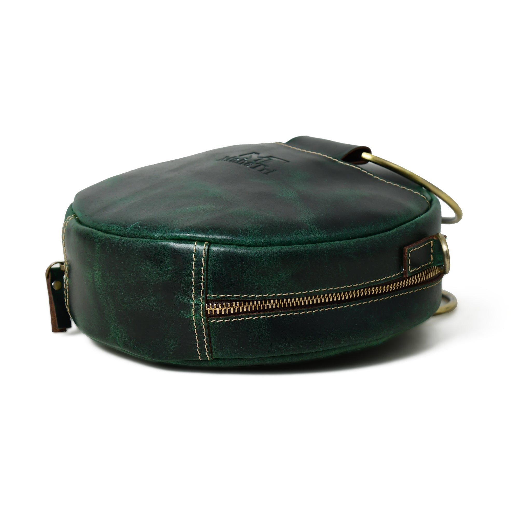 Introducing our latest fashion marvel -Rosie Sling Circle Bag. This unique and stylish accessory is designed to make a bold statement wherever you go. Crafted from high-quality dark green buffalo leather, it exudes an air of sophistication and elegance, while its circular shape adds a touch of whimsy to your ensemble.