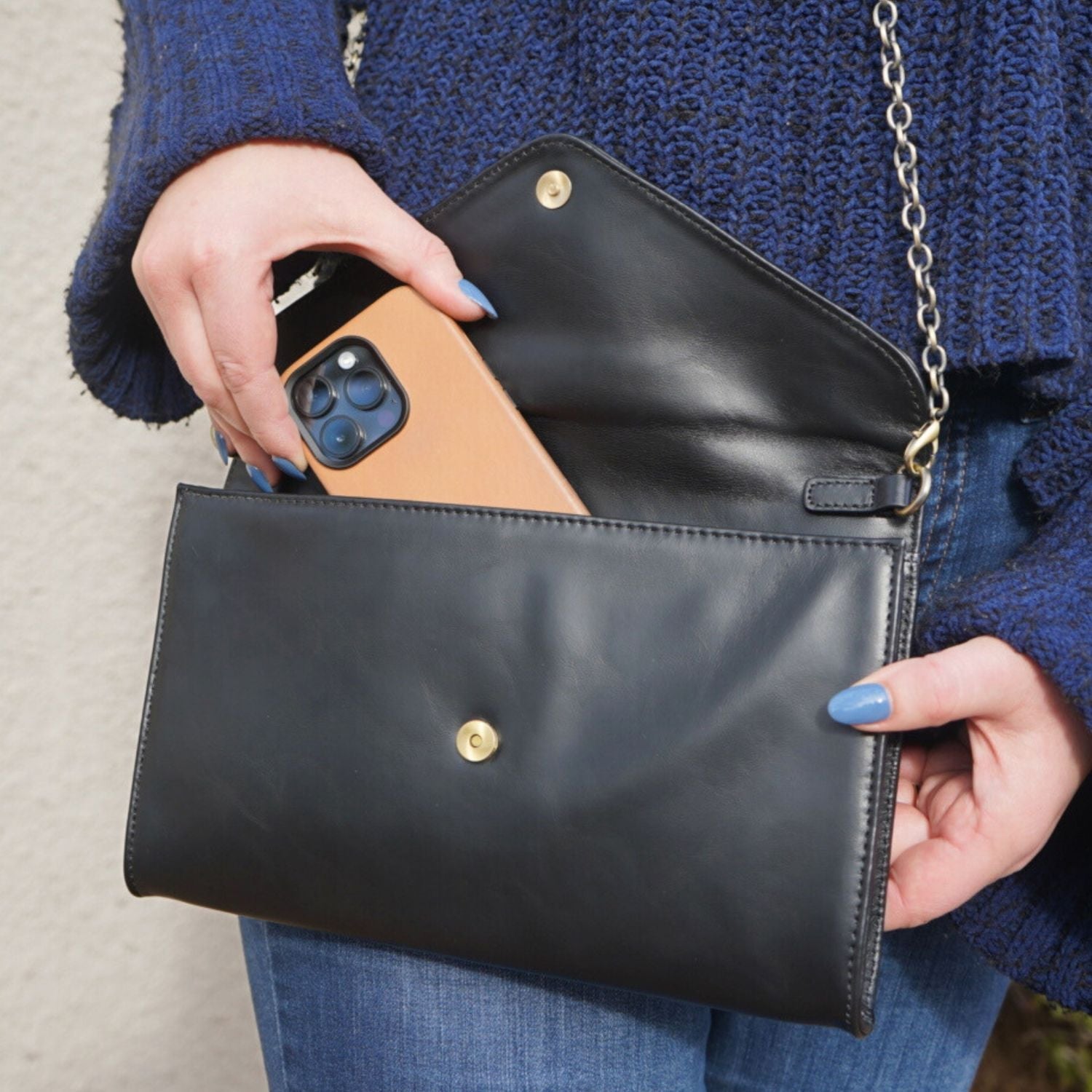 Discover the Charli: a chic full-grain leather clutch that combines elegance with practicality. Its magnetic feature allows for a secure and stylish fit inside our Page Tote. Perfect for essentials, the Charli is the ultimate accessory for seamless transitions from day to night.