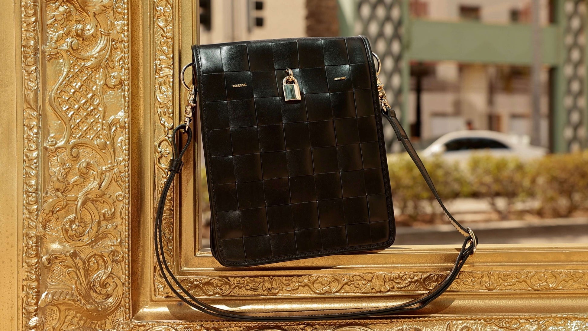 Woven Leather Black Crossbody Bag