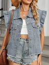 Ruffled Raw Hem Button Up Denim Jacket - 95%cotton