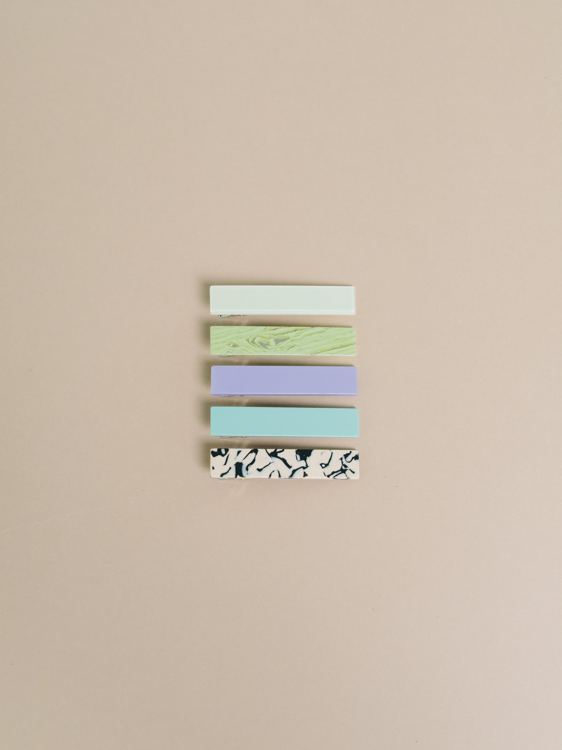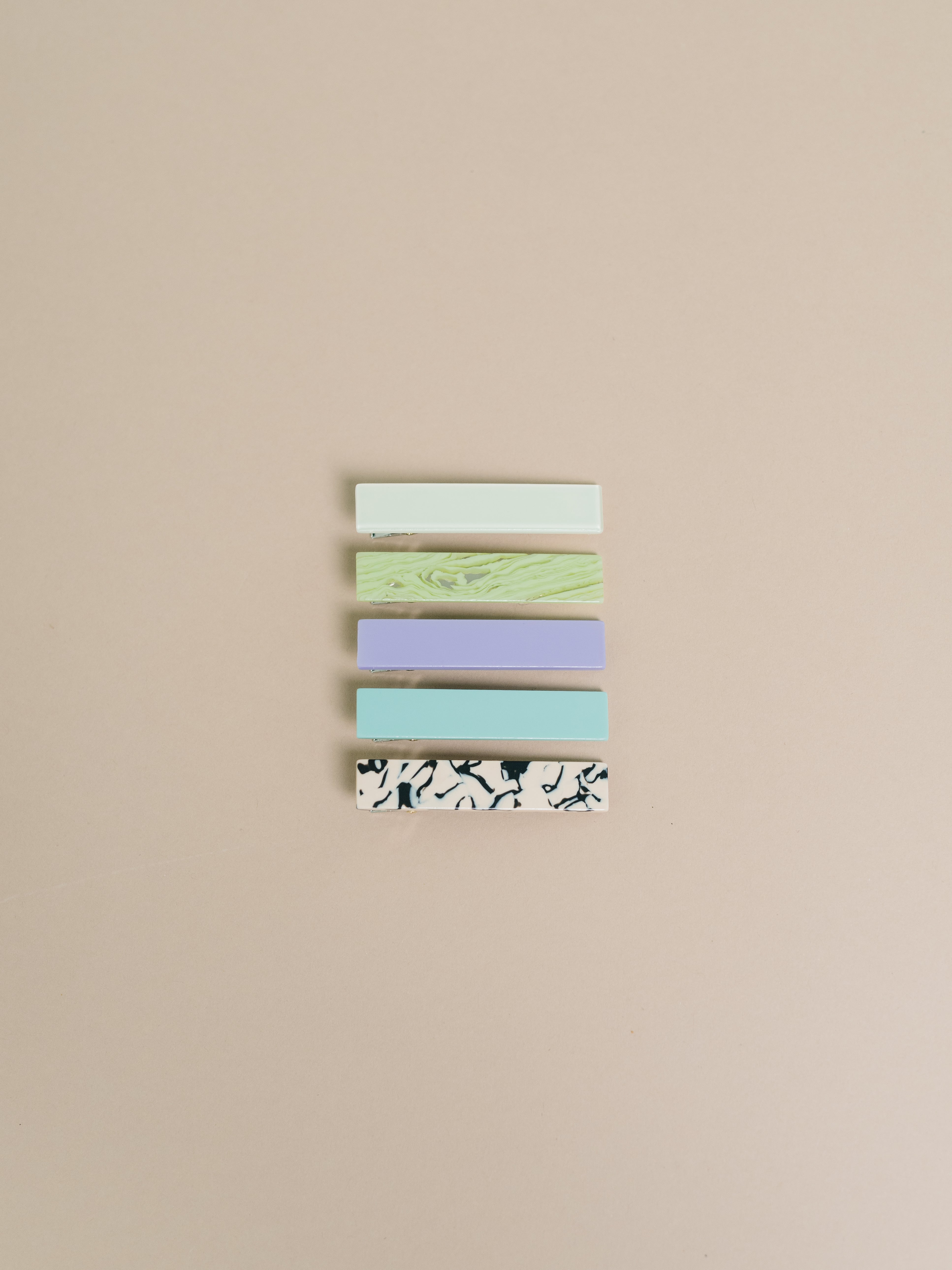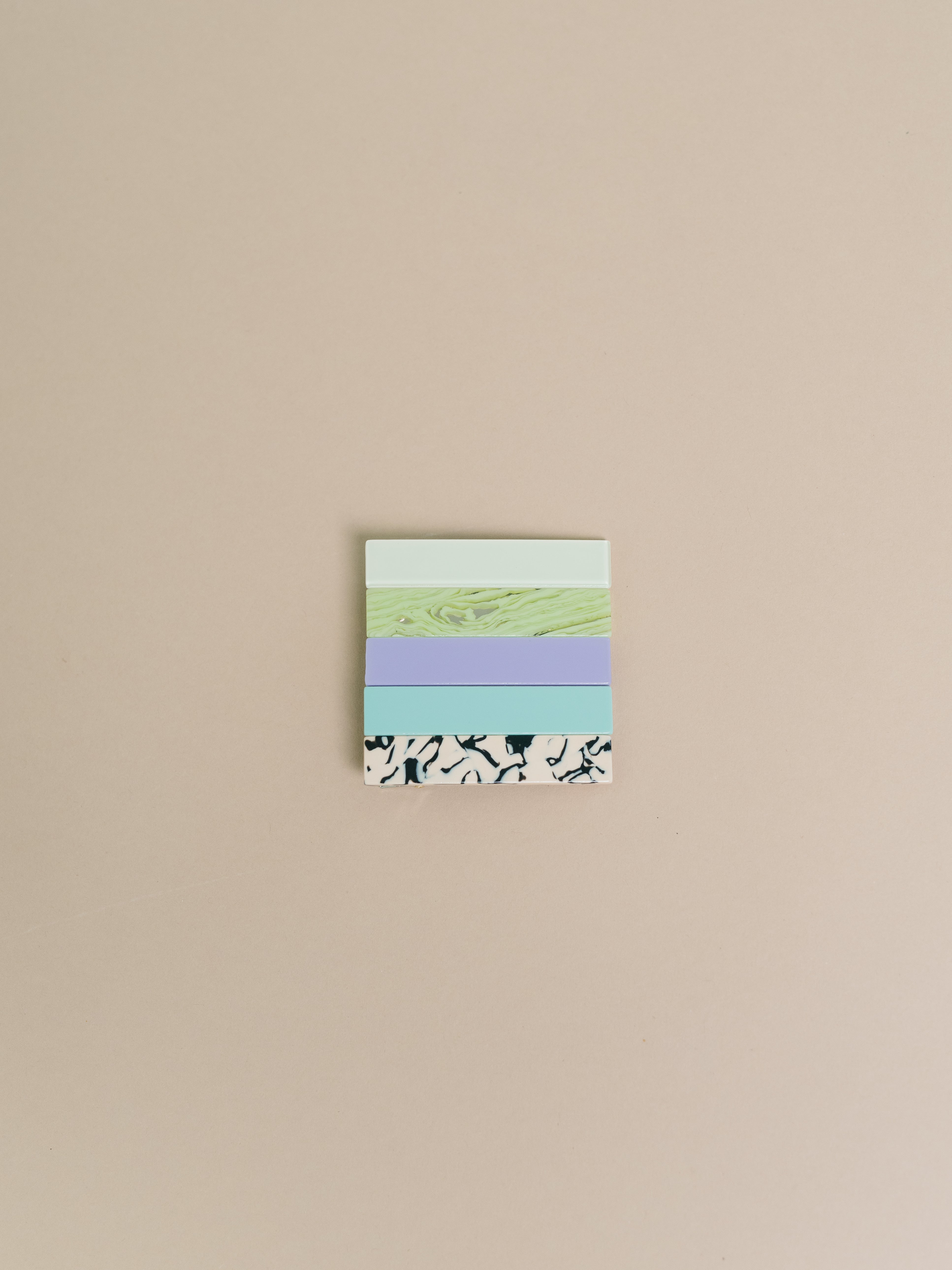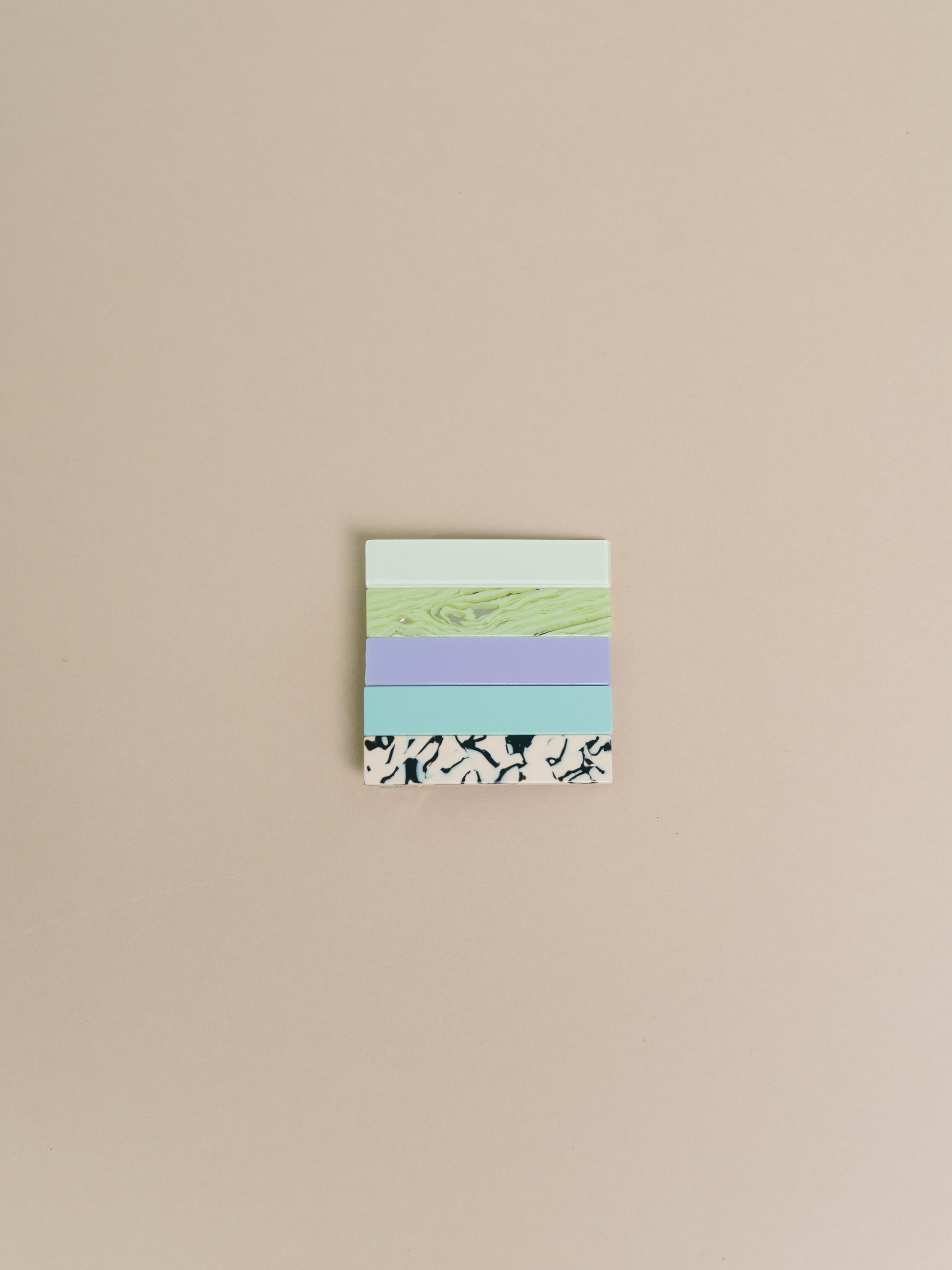 COLOR - marble, turquoise, periwinkle, striped green. light green