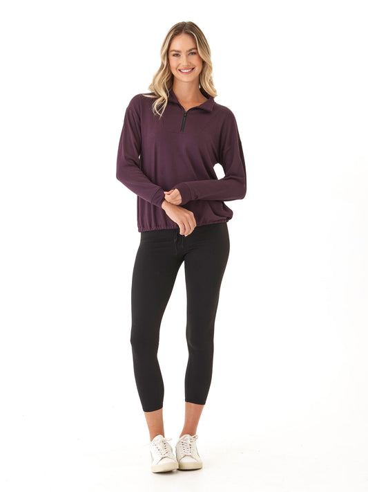 Zenana F/terry Pigment Dye & Enzyme Washing Half Zip Top
