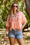 Coral Tie Front Embroidered Peplum Top - FINAL SALE
