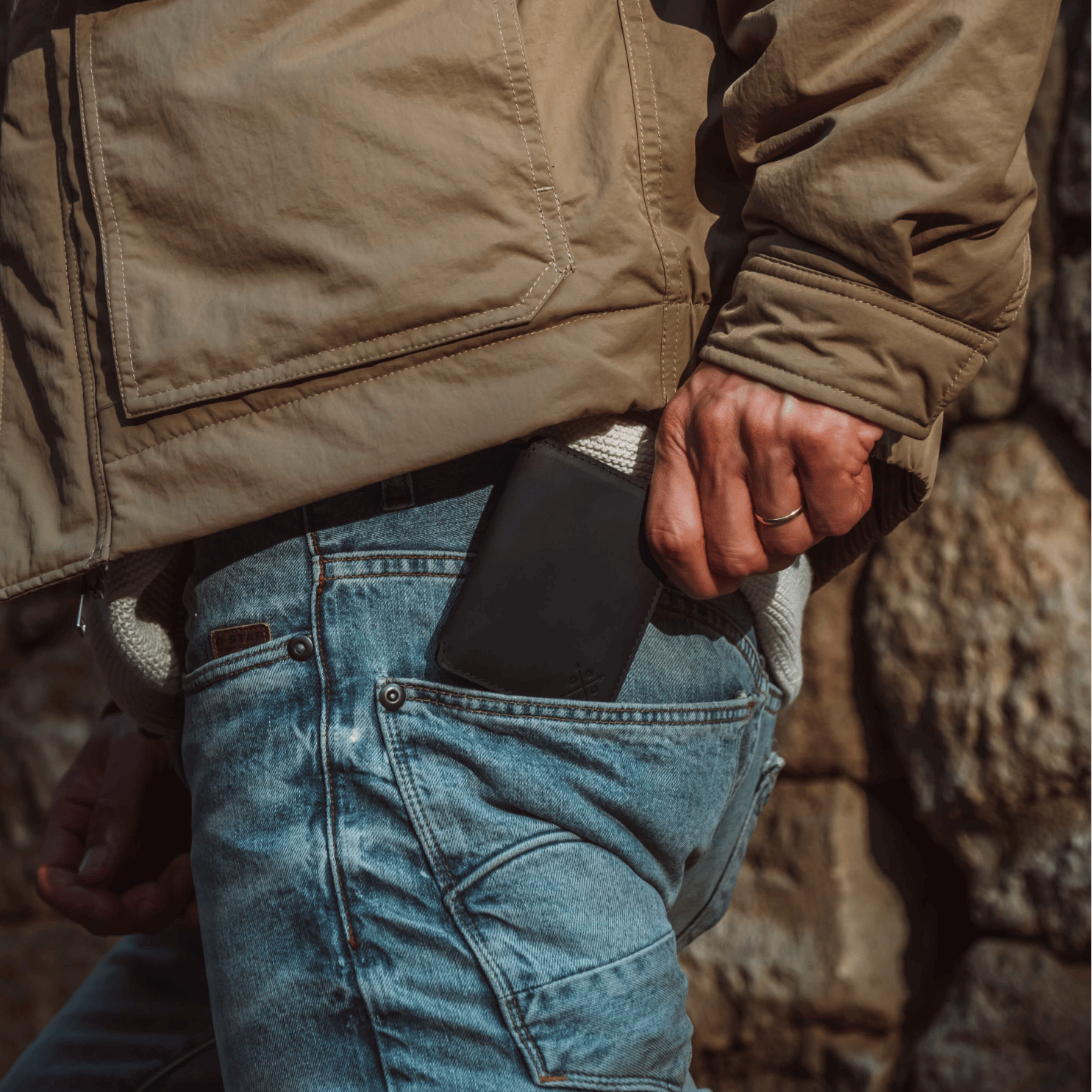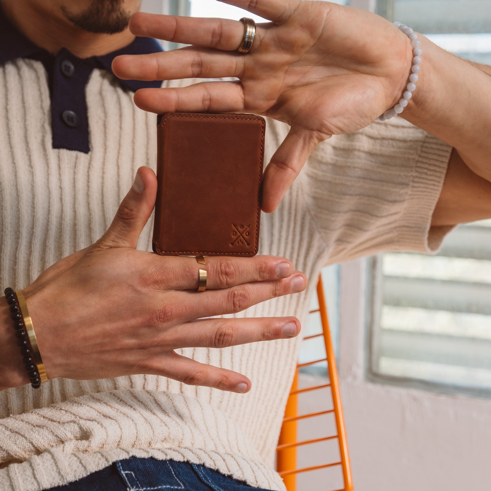 Ultra-thin at just 0.2 inches and featherlight at 1 ounce, this wallet redefines portability. Crafted from top-quality cowhide leather, it features a magnetic closure, a quick-access pull tab for your most-used cards, and a hidden slot for a wallet tracker card.