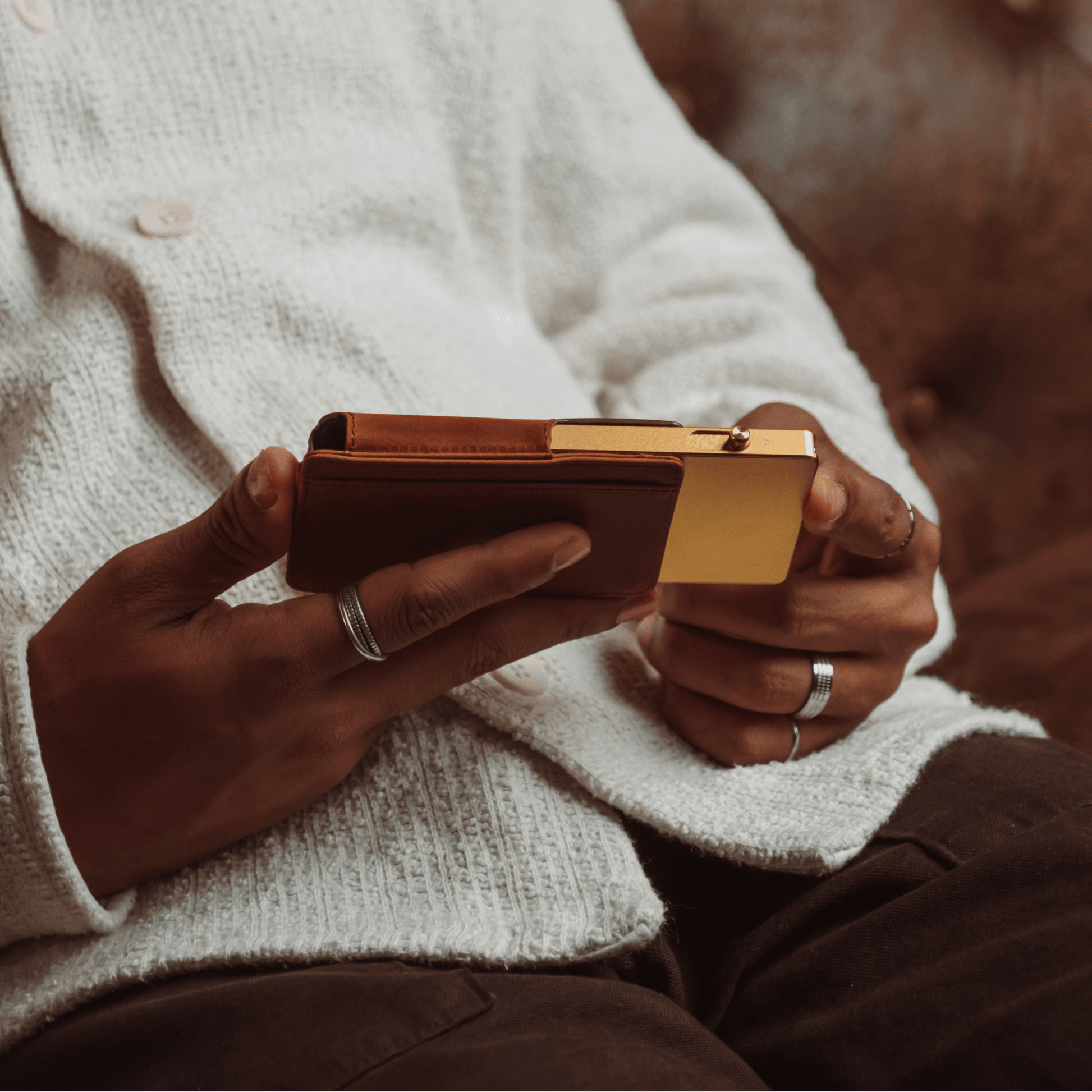 The removable card holder, a game-changer in slim wallets, holds 7 cards flat – one more than traditional pop-up card holders. Customize your style and simplify your carry by effortlessly detaching the card holder. Interchange colors with different top-grain leather and card holder options for a truly personalized experience.