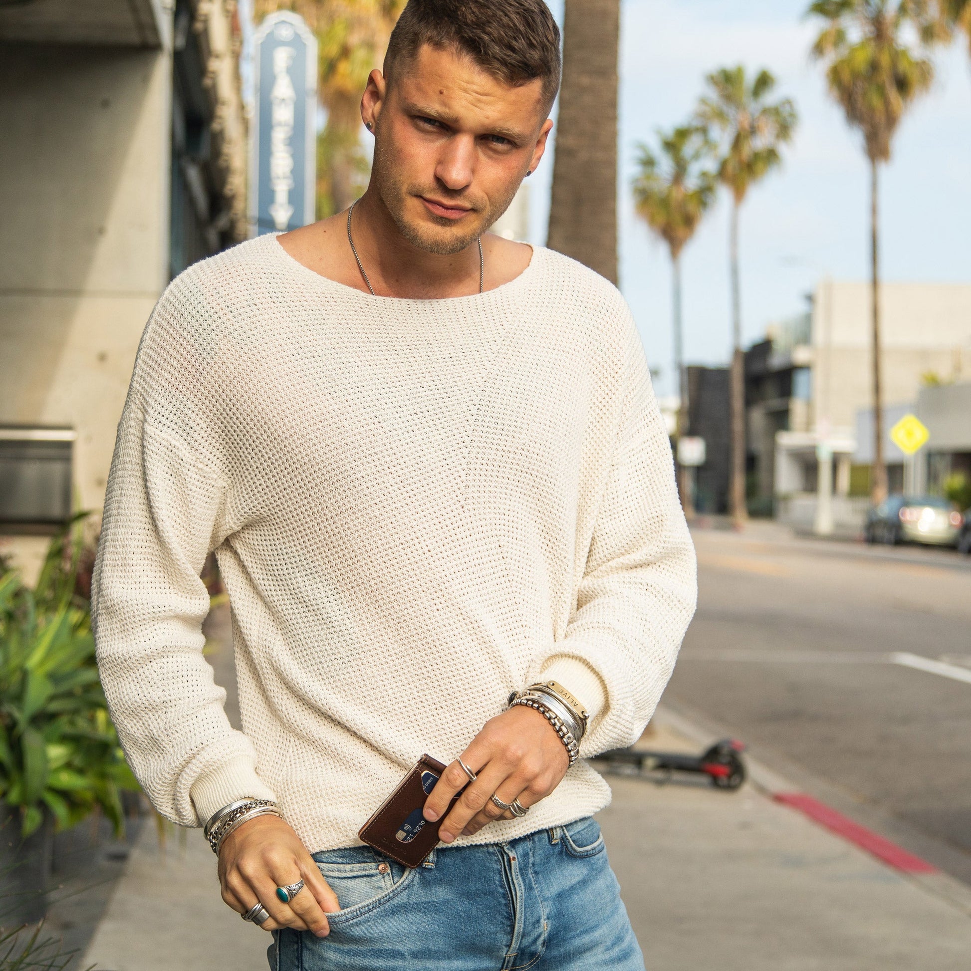 It comes equipped with two external pockets and a money clip for cash in the middle. It is simple, practical and stylish. It is handmade in Los Angeles with naturally dyed leather so it is non toxic and biodegradable.