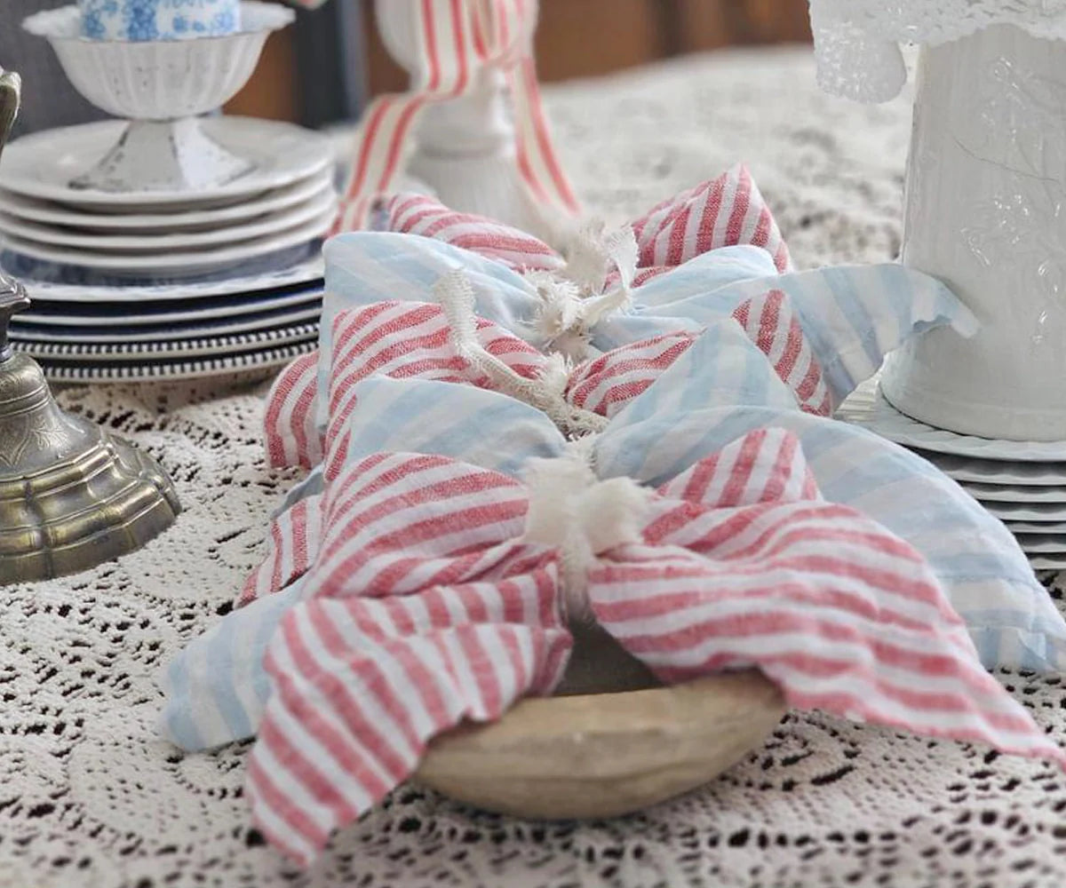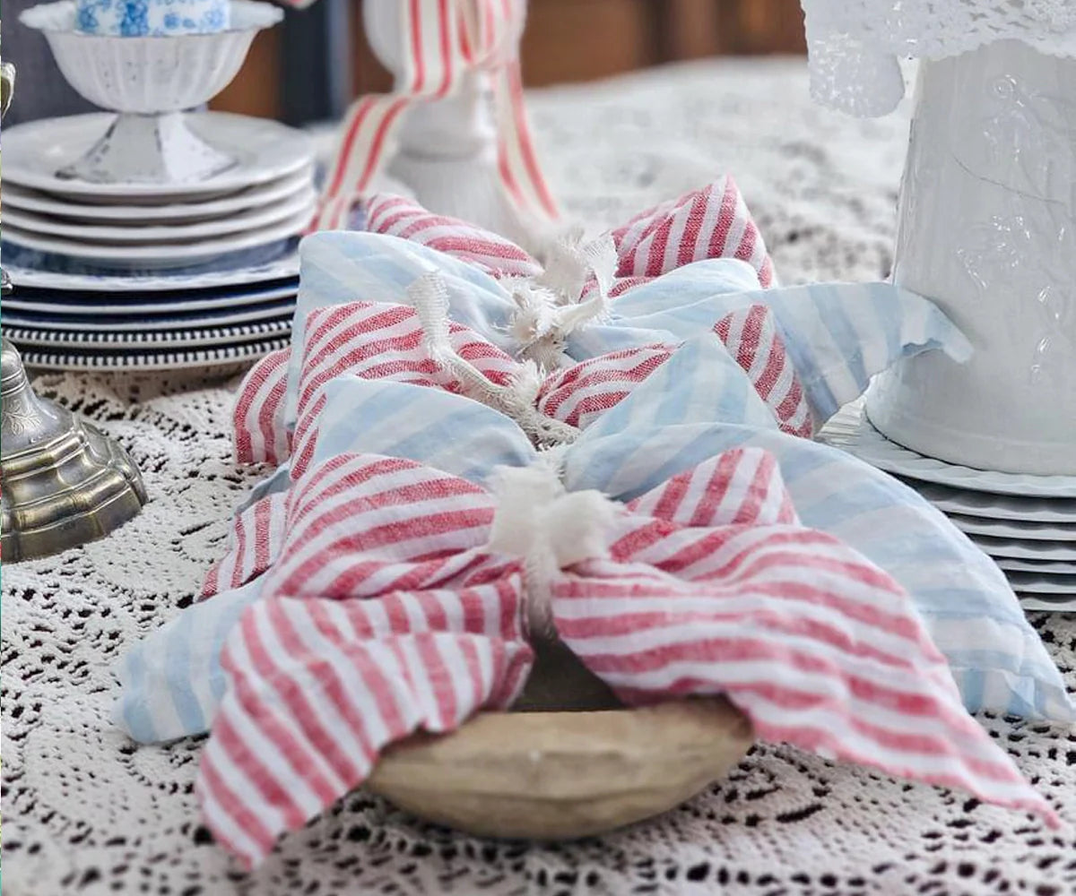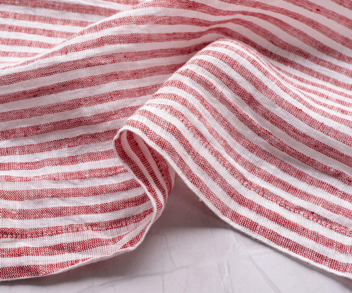 Add a touch of sophistication to your dining experience with our Red Pinstripe Linen Napkins. Crafted from 100% pure linen, these napkins offer a luxurious feel and long-lasting durability. Whether you're setting the table for a casual meal or an elegant gathering, these red dinner napkins bring warmth and charm to any occasion.