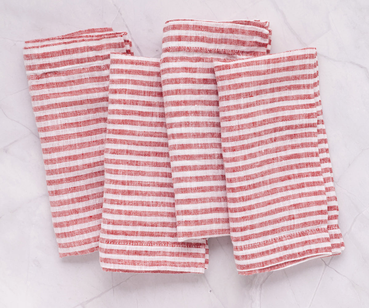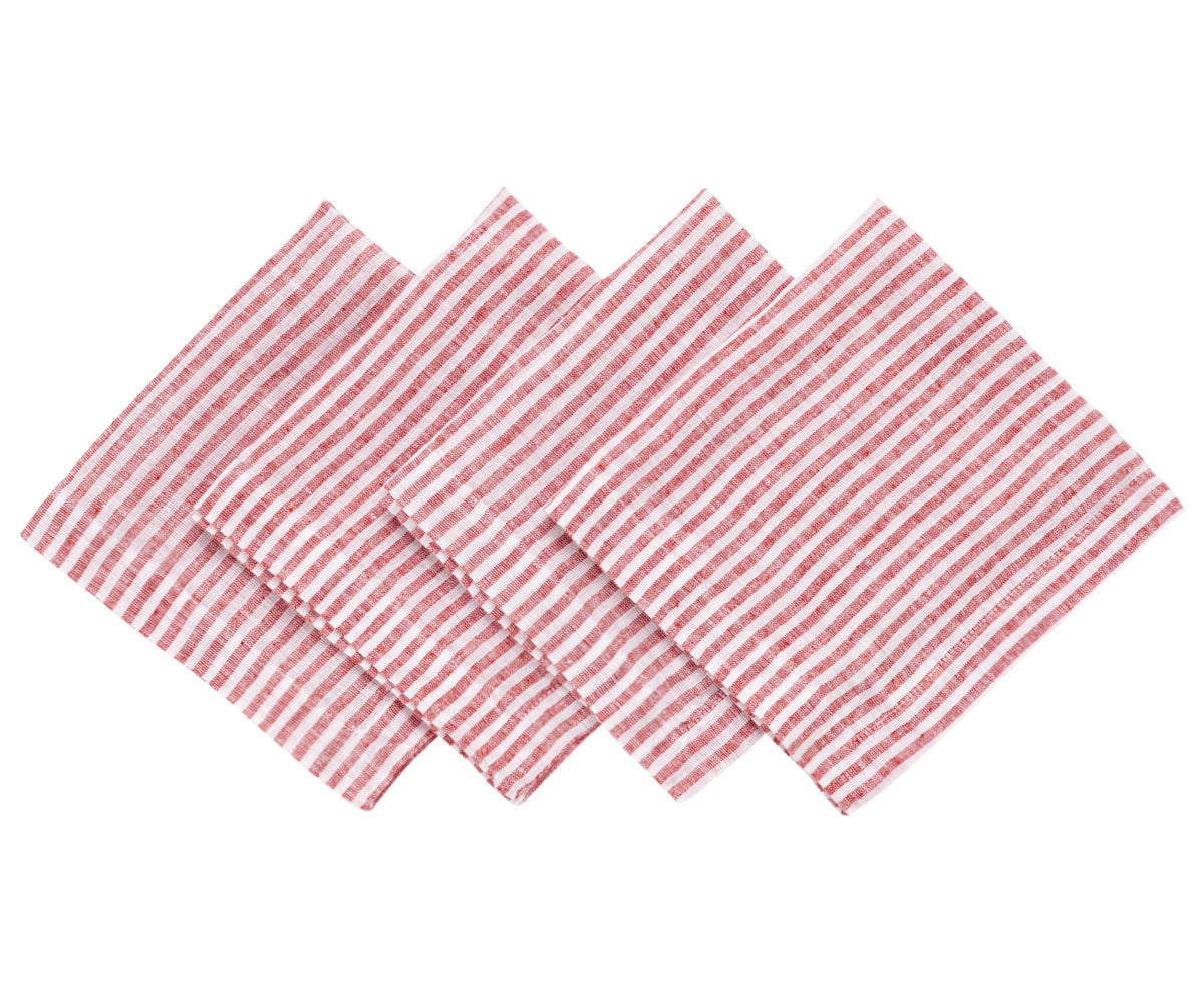 Red Pinstripe Linen Napkins - Set of 4, 8 & More