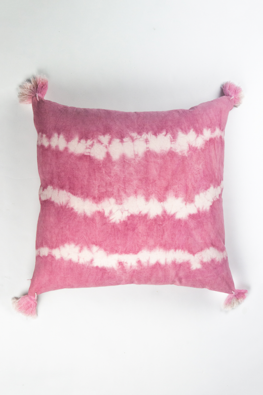 Pink Natural Dyed Shibori Tassel Square Pillow