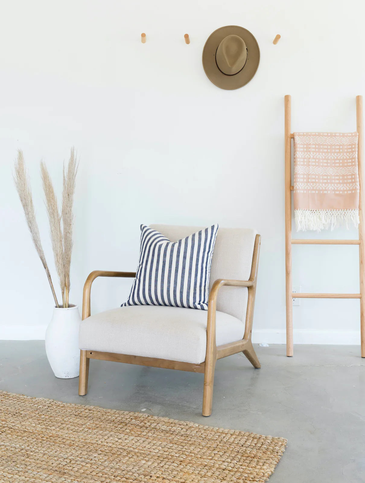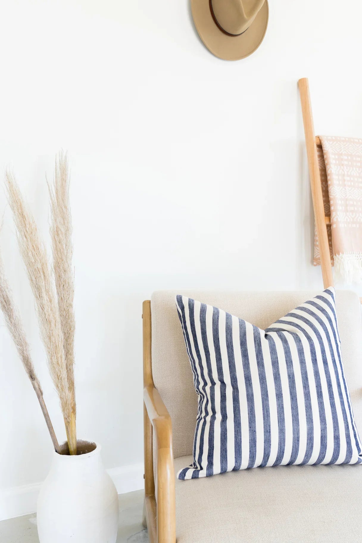 Featuring a beautiful striped blue and white design, our Veronica pillow, named after it's maker, is crafted on the foot pedal loom by a female artisan weaving cooperative from an indigenous community in the Western Highlands of Guatemala. These artisan weavers are expert in the ancient techniques of back-strap, pedal loom weaving and embroidery. The cooperative enables isolated and marginalized women who live in these areas to earn an income. They use the traditional techniques of the back strap loom, the pedal loom, and natural dyes made from bark and flowers to produce their beautiful contemporary textiles.