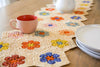Hand woven tabletop Crafted from high-quality raffia and skillfully hand woven into intricate flower patterns, this placemat is both durable and visually stunning. Its elegant fringe design and rich texture make it the perfect addition to any tableware collection, and its handmade construction means that each piece is completely one-of-a-kind. Made with natural raffia leaves and created from a combination of crochet-like hexagons decorated with blooms at the center of each, this table runner sets the foundation for a nature-inspired table - indoors or al fresco.
