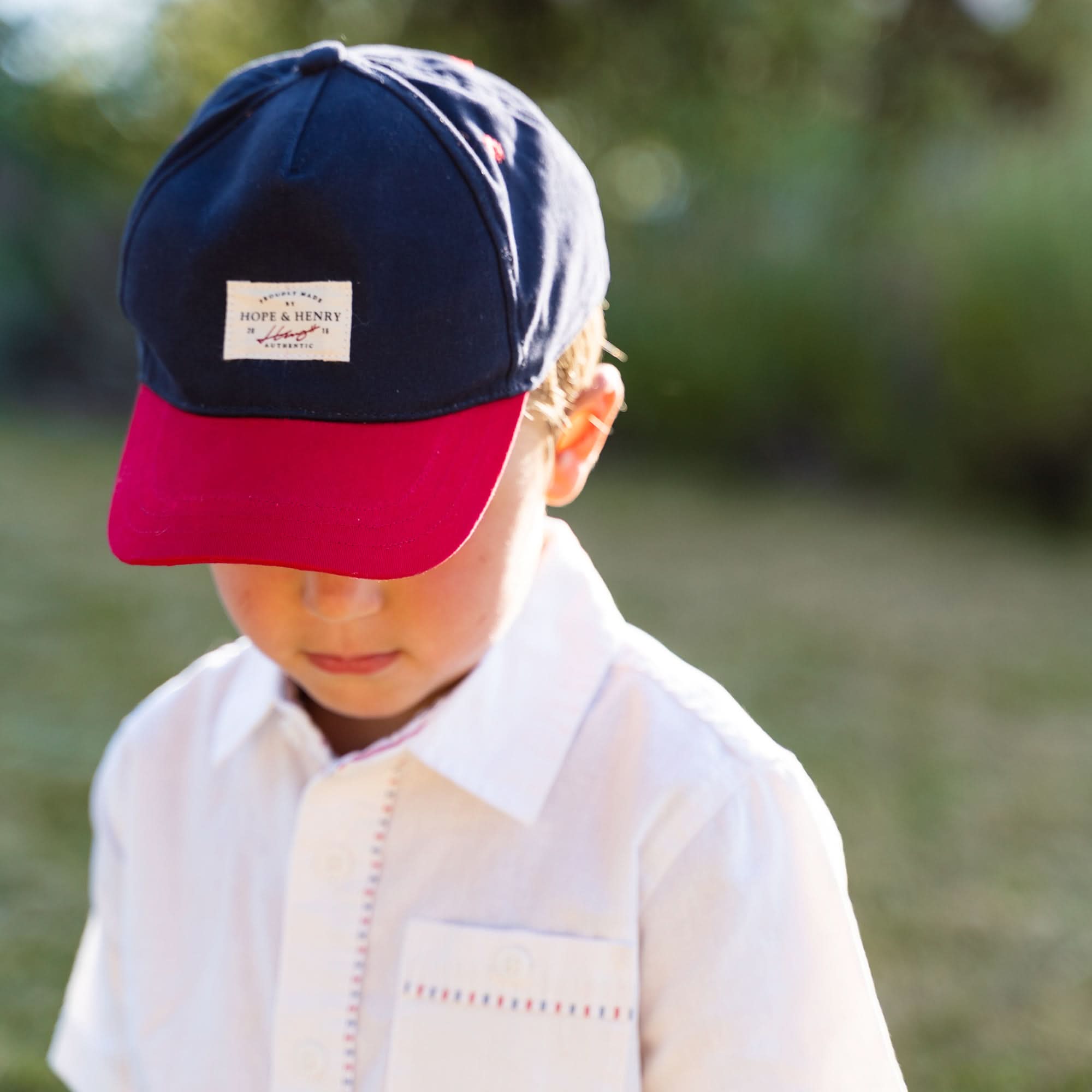 - Contrast bill and adjustable back slide closure. Small canvas logo label.