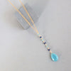 - Blue Chalcedony gemstones paired with shades of blue gemstone accent stones- 18-20" long with a 2" extender chain