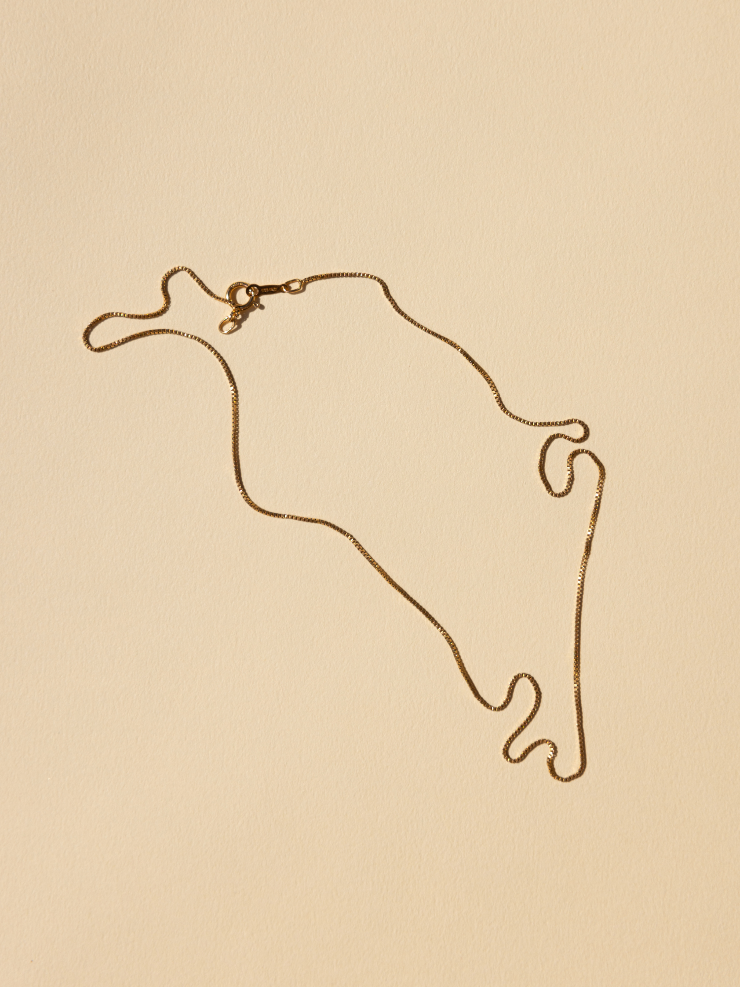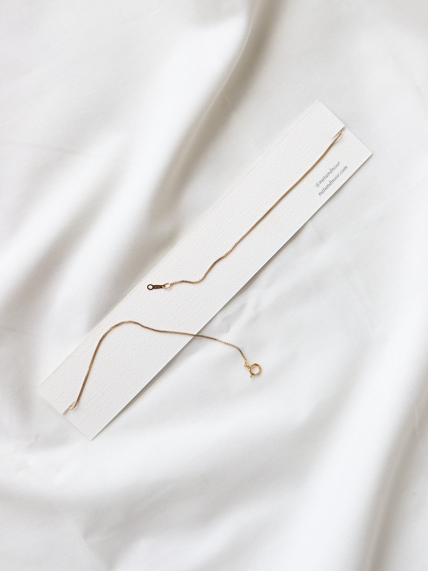 Designed to delicately rest along the collarbone, accentuating your neckline. Its carefully crafted box chain showcases a series of interconnected square links, creating a seamless and timeless piece that catches the light beautifully.
