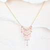 Necklaces that demonstrates the charming side of fringe, crafted with Pink Tourmaline and Champagne Quartz gemstones. Measuring 16-18" in length with a 2" extender chain. Handmade from 14k gold plated over .925 Italian silver and secured with a spring ring clasp. Our special gold plating process ensures that our jewelry is resistant to tarnishing. Each necklace arrives in a beautiful gift box.