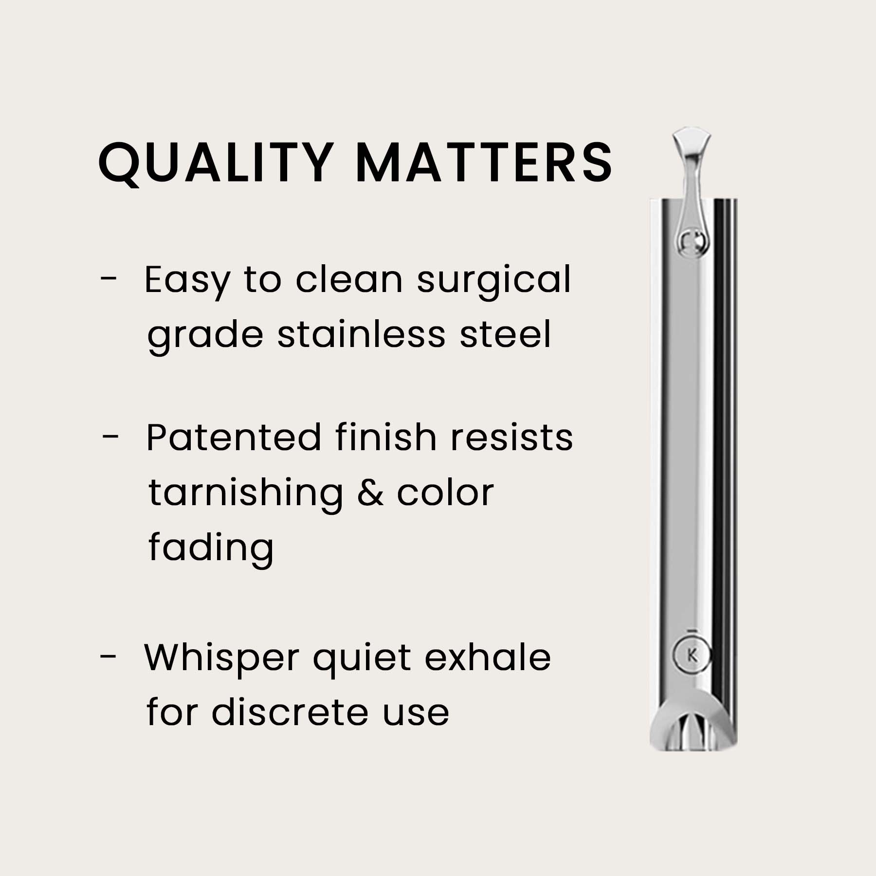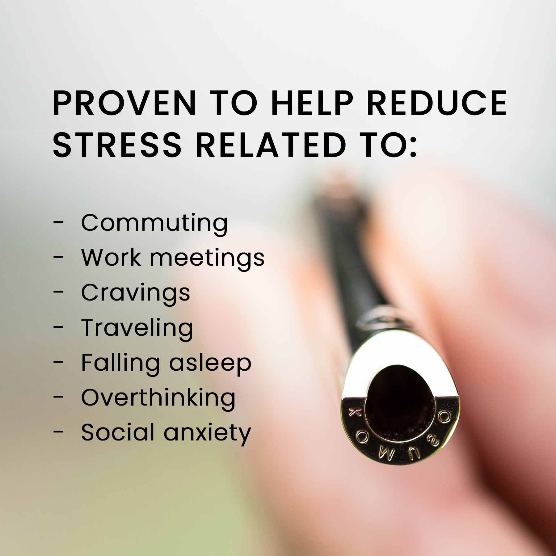- Tested and patented tube length and diameter in order to create ideal exhalations that physiologically trigger calm.