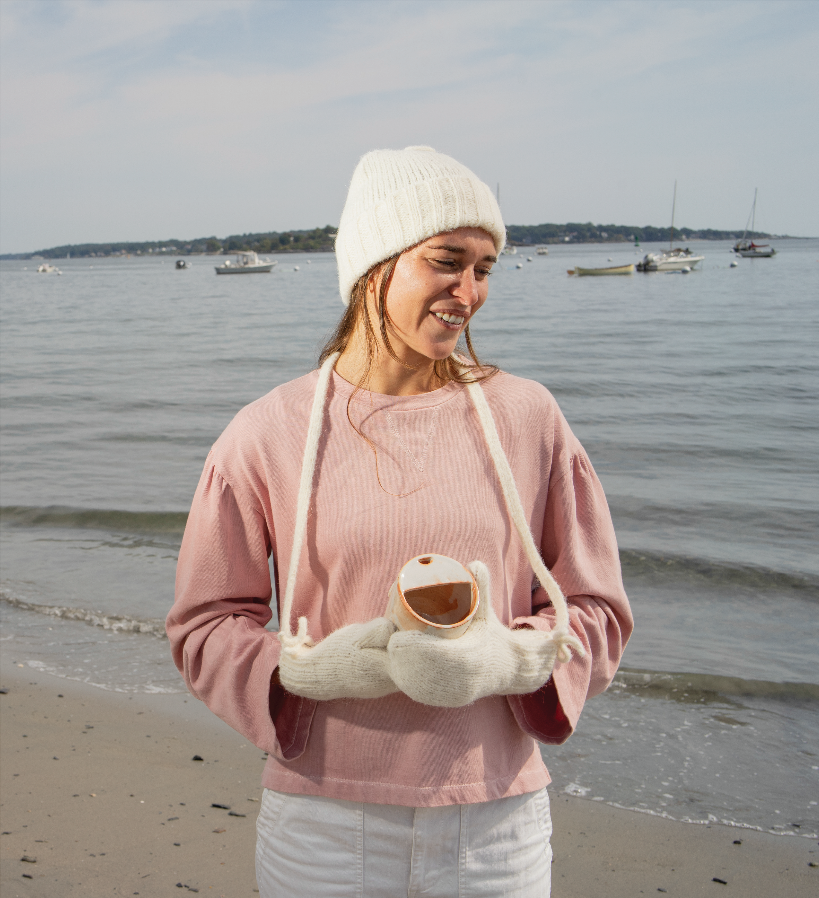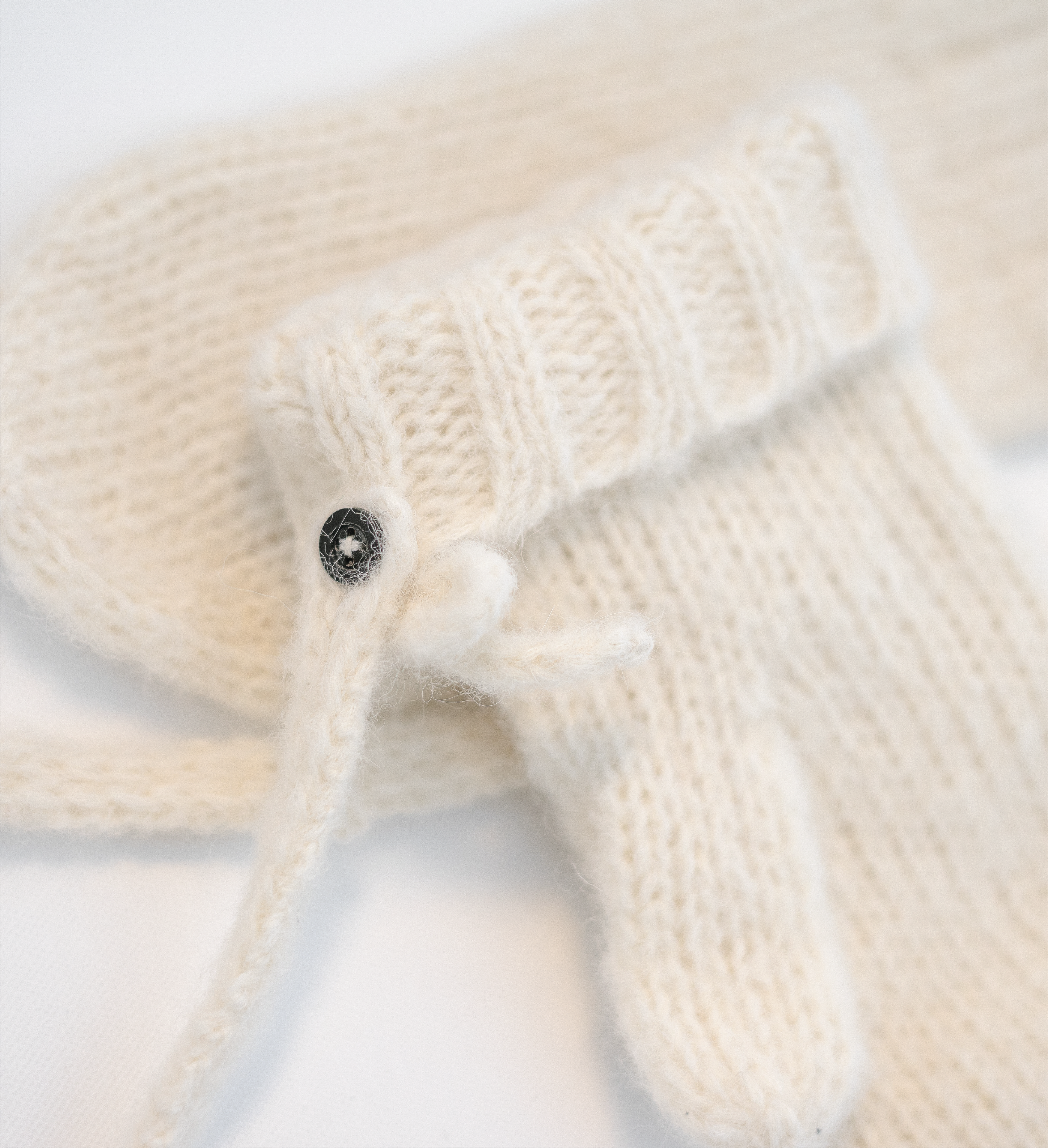 Crafted for Moments of Remembrance-Indulging in nostalgic comfort, the Cosset Mittens are inspired by times past. Knitted from an astonishingly soft blend of alpaca & cotton, a delicate feathery texture graces the surface of the mittens, forming a cocoon of comfort for cold hands. A dainty bow adorns each rib cuff situated just below the wrist, keeping the chill at bay. A thin detachable cord allows for ease of carry & freedom from separation when not in use, creating a faultless keepsake to gift yourself or a loved one. Pair yours with the Ballet Beanie to complete the look.
