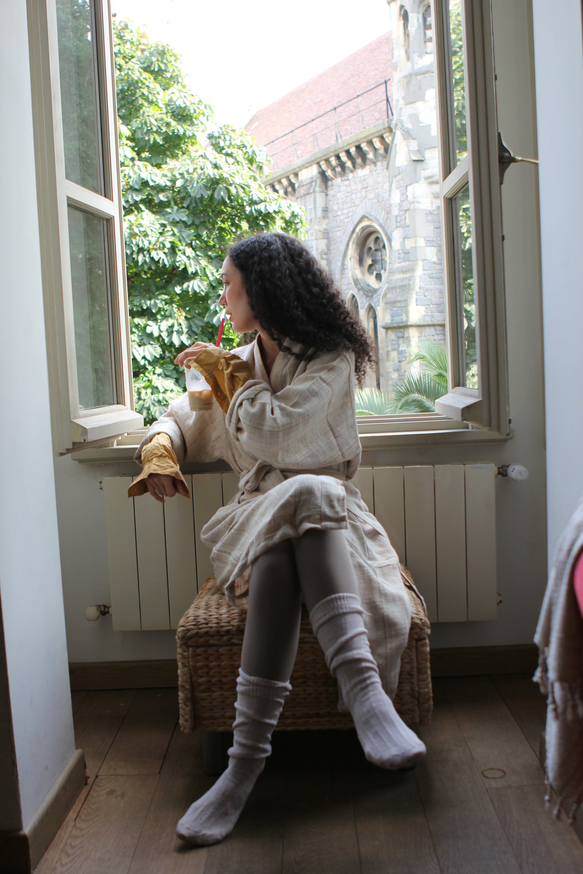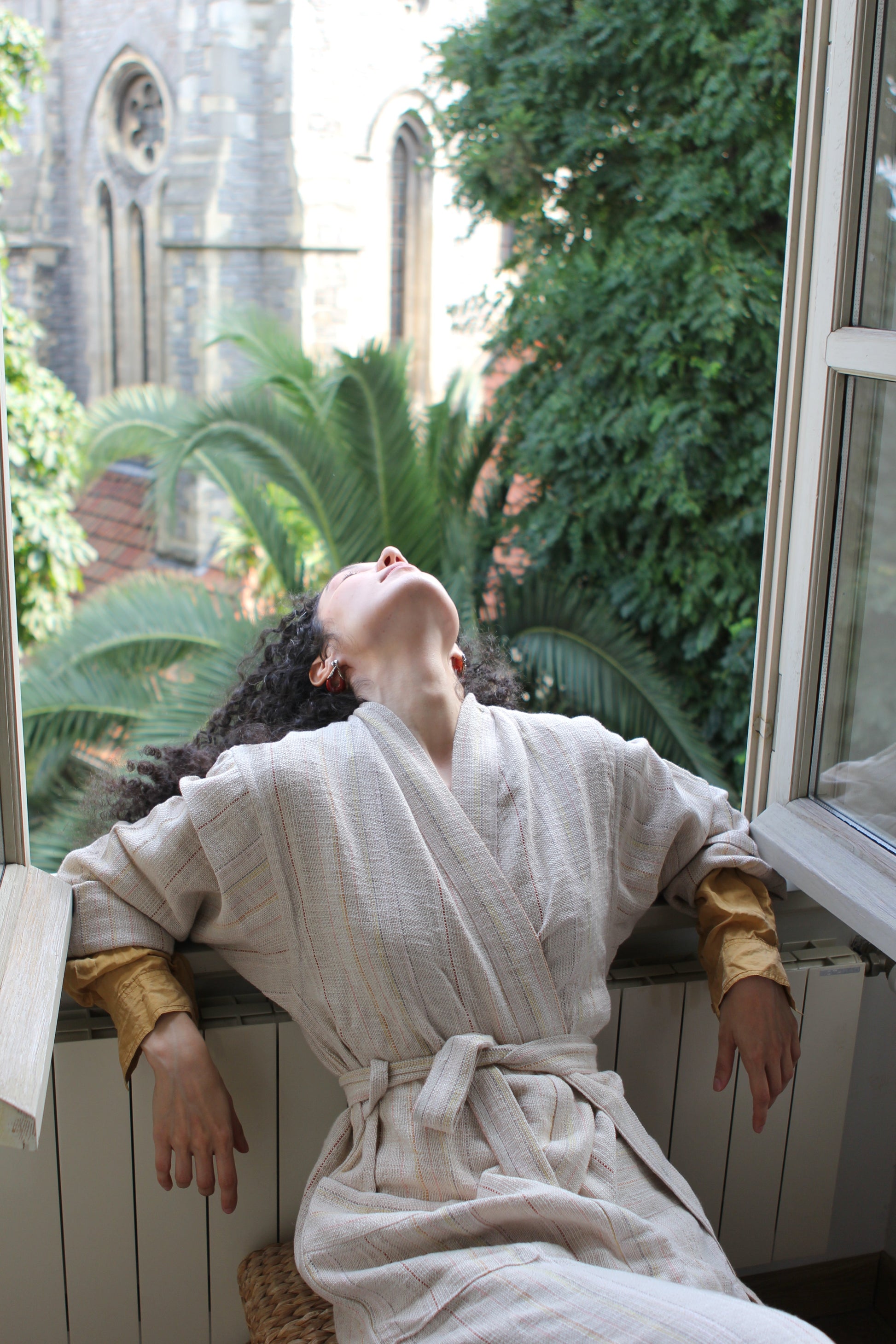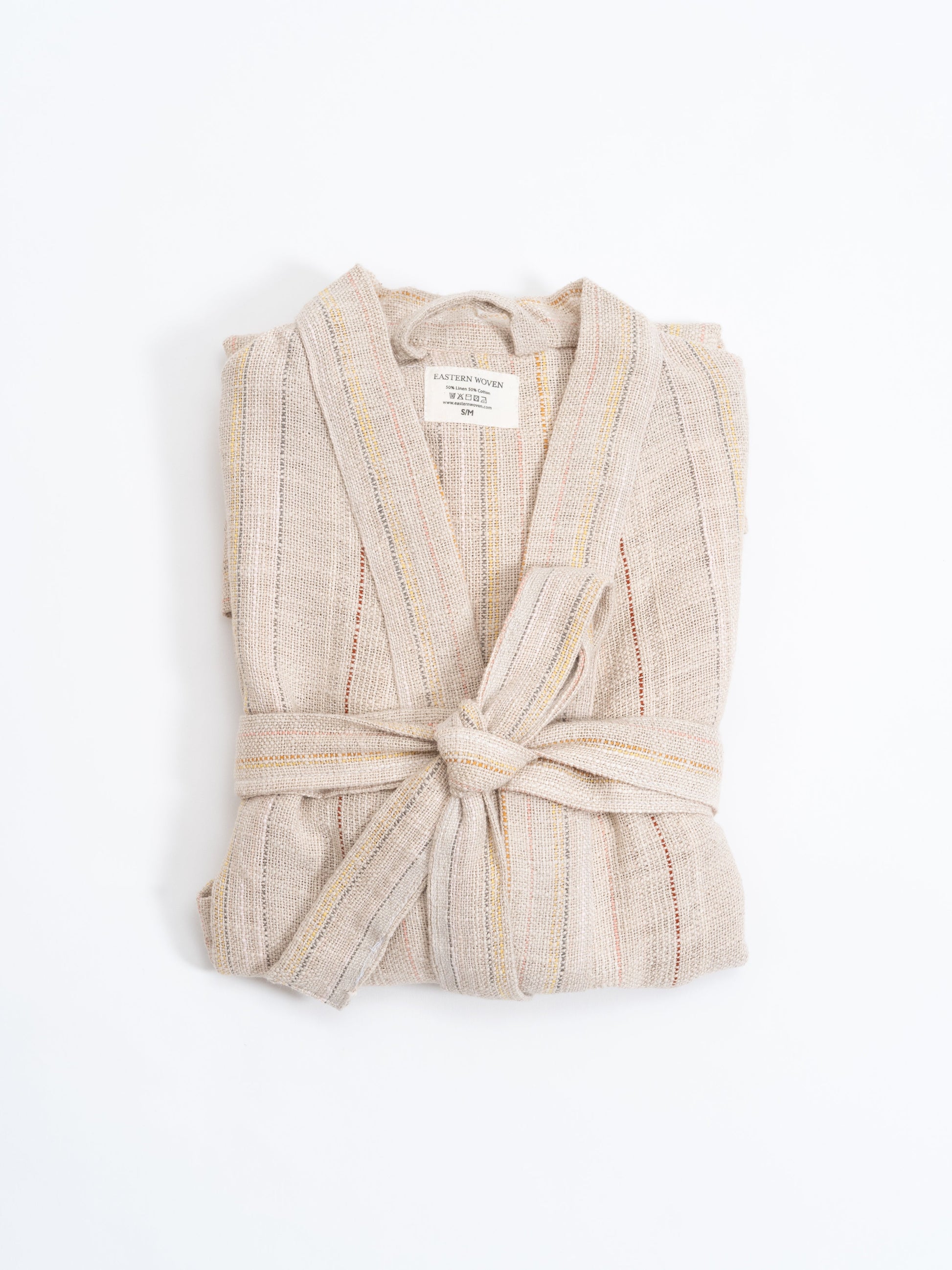 Introduce yourself to the ultimate comfort and style with our Kirlangic Robe. Made from soft and breathable linen-cotton blend, this robe exudes a relaxed and effortless vibe. With a classic beige color, it's versatile enough to match any look. Perfect for lounging at home or throwing over your swimsuit on the beach, this robe is designed to be a staple in your wardrobe. Available in multiple sizes to fit your body perfectly. Upgrade your relaxation game with Kirlangic Robe.